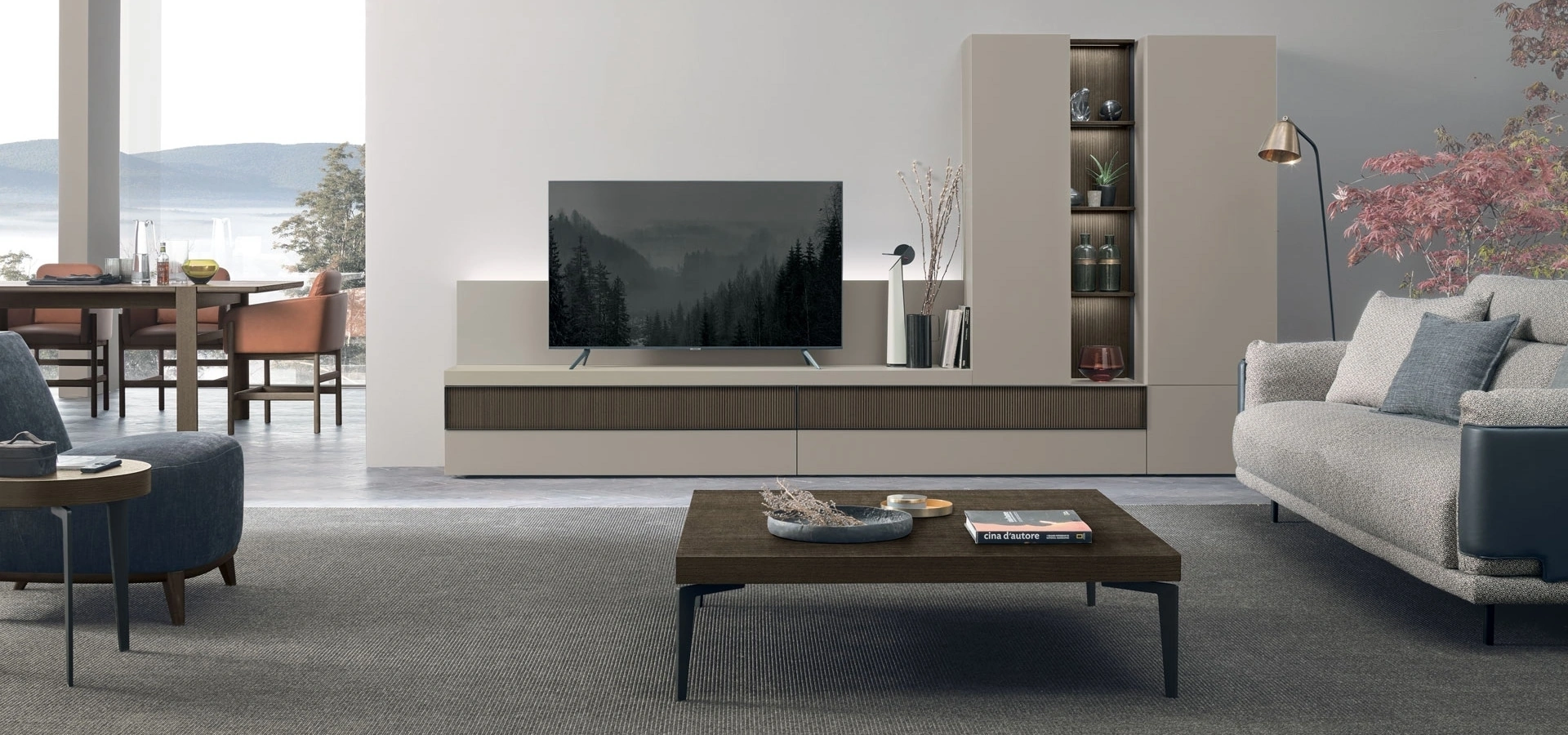 Parete attrezzata Atlante UNIT AT110 di Tomasella per il soggiorno realizzata in melaminico
