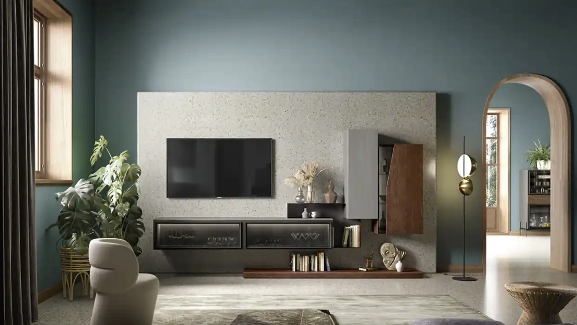 La composizione Kosmos KC101 di Moretti Compact include soluzioni per l'integrazione di un modulo TV?Sì, la linea Kosmos KC101 prevede moduli specifici per l'integrazione della TV, completi di passacavi. Questo permette di creare una composizione esteticamente pulita e funzionale per il tuo spazio living, integrando al meglio la tecnologia.