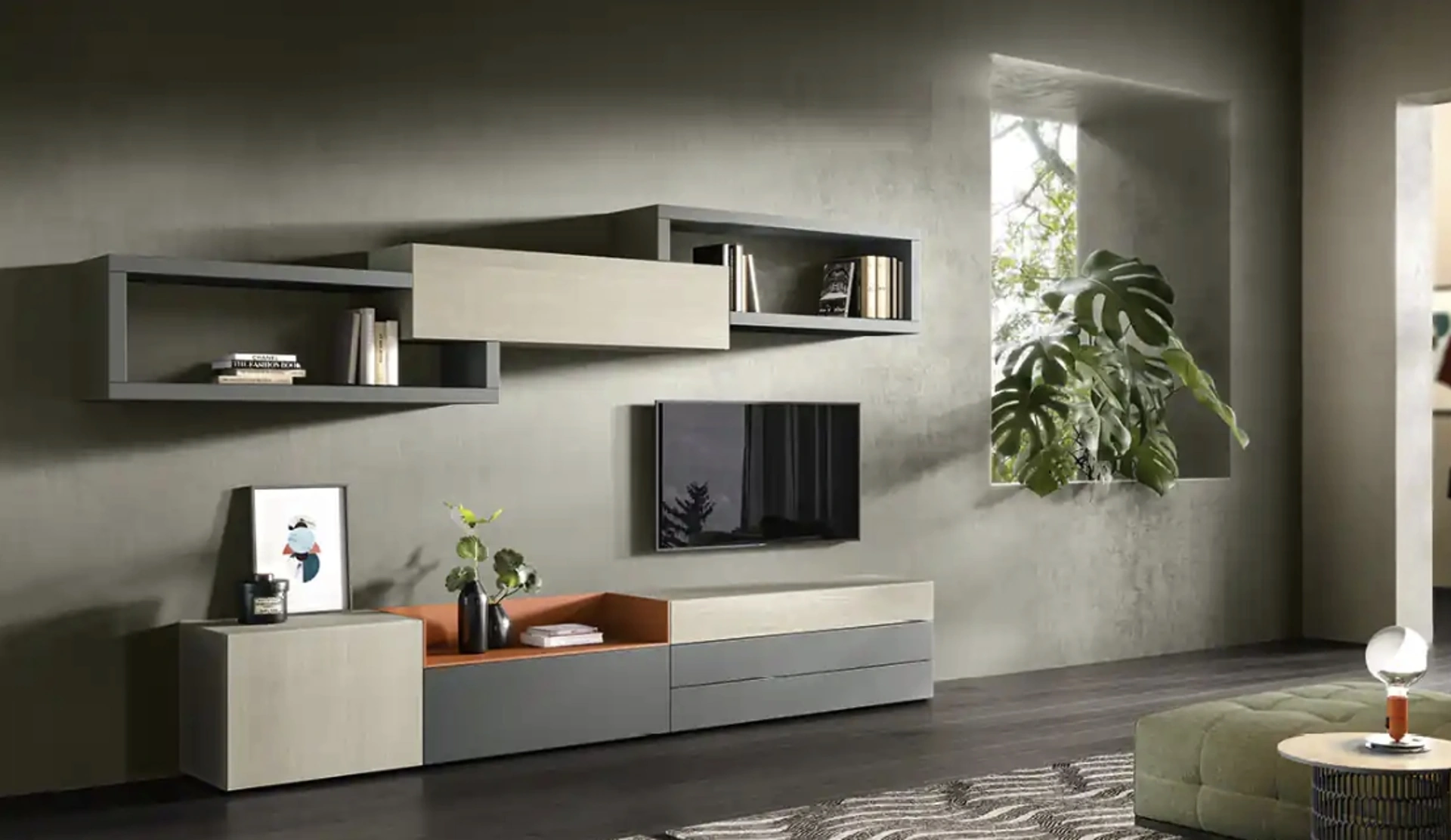 La parete attrezzata Kosmos KC111, fiore all'occhiello della collezione Living Kosmos di Moretti Compact Giorno Notte, incarna un sistema d'arredo per la zona giorno altamente modulare e funzionale. Il suo design contemporaneo è studiato per ottimizzare gli spazi e promuovere un ambiente di benessere. Realizzata con materiali pregiati come Nobilitato Bianco, Nobilitato Frassino Cenere, Laccato opaco Ardesia, Laccato opaco Corallo, questa composizione offre finiture esclusive che ne esaltano l'estetica e la durabilità. Ogni elemento è pensato per un'integrazione armonica, garantendo soluzioni personalizzate e un'elevata qualità costruttiva. L'investimento in un arredo di questa qualità garantisce una soluzione durevole e un'estetica in linea con le più attuali tendenze del design, pensata per un benessere abitativo prolungato.