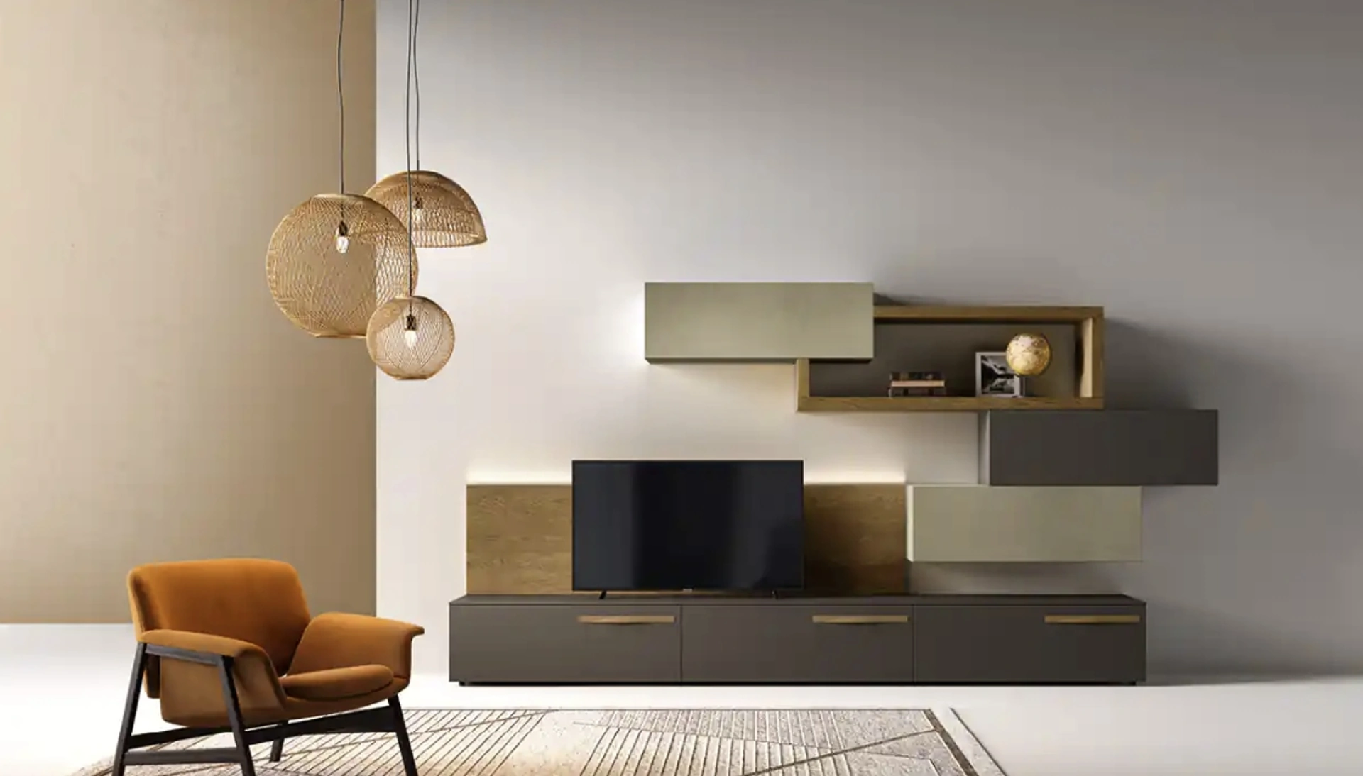 È possibile personalizzare le dimensioni e le finiture della parete attrezzata Kosmos KC126?Assolutamente sì. È possibile personalizzare le dimensioni standard e scegliere tra una vasta gamma di materiali e finiture. Rusconi Arredamenti s.r.l. dispone di una materioteca per aiutarti nella scelta e nella visualizzazione dei campioni.