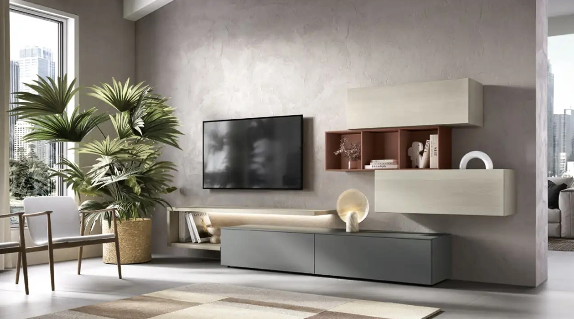 È possibile personalizzare le dimensioni e le finiture della parete attrezzata Kosmos KF104?Sì, è possibile personalizzare le dimensioni standard degli arredi per adattarsi al tuo spazio. Inoltre, puoi visionare un'ampia gamma di campioni di materiali, finiture e rivestimenti nella nostra materioteca per un progetto su misura.