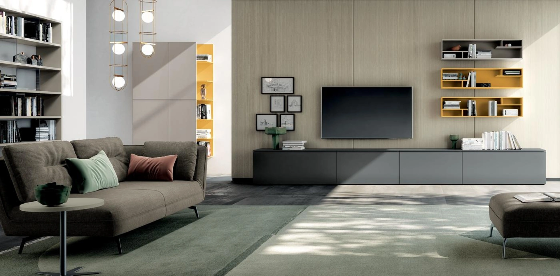 Parete Attrezzata Living 820 di Spagnol Mobili: scopri una delle più originali soluzioni in laccato opaco per arredare il soggiorno con noi