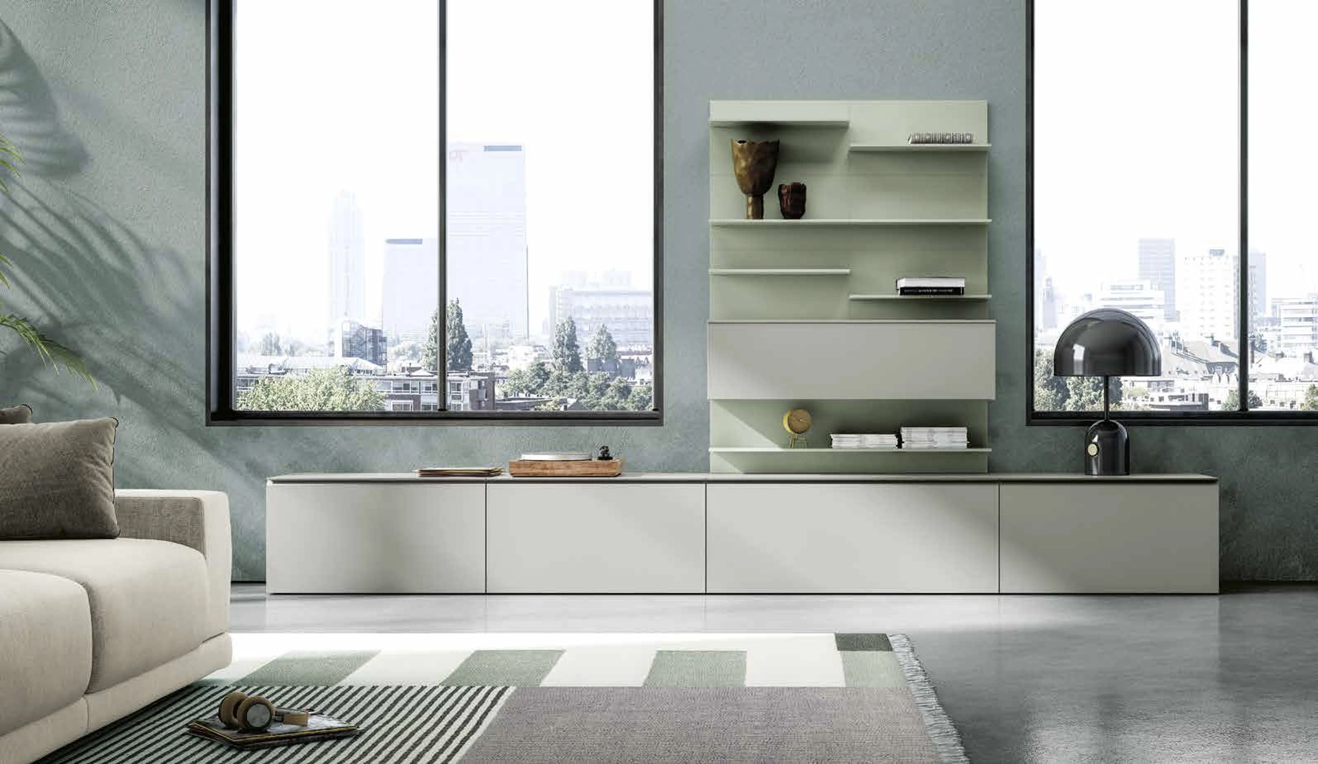 Parete Attrezzata Living 837 di Spagnol Mobili: scopri una tra le più esclusive soluzioni in laccato opaco per arredare il living con noi
