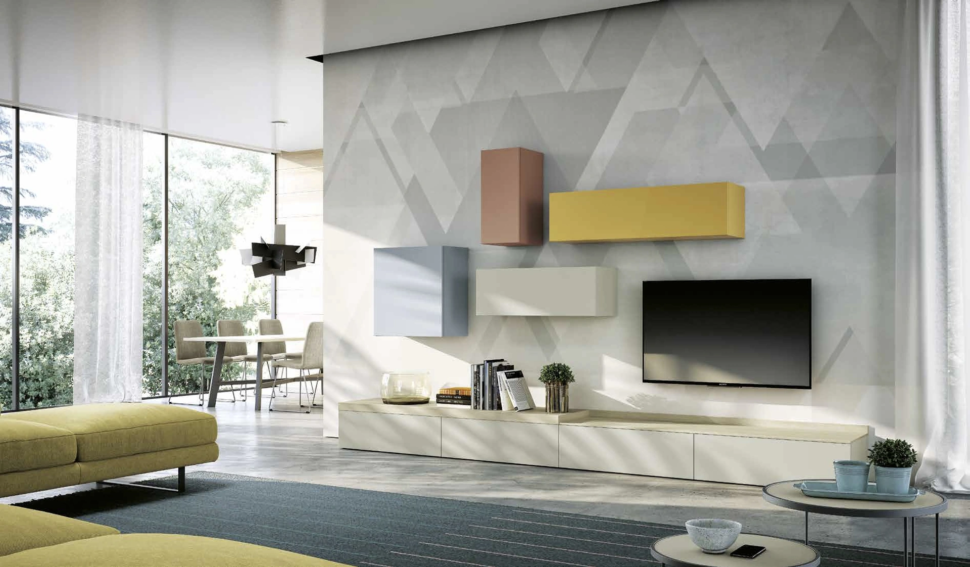 Parete Attrezzata Living 846 di Spagnol Mobili: scopri una delle più esclusive soluzioni in laccato opaco per arredare il soggiorno insieme a noi