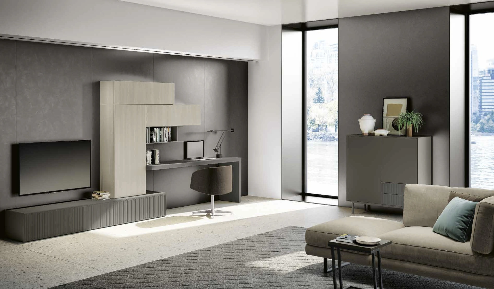 Parete attrezzata dalle linee moderne realizzata in melaminico: scopri il nostro Arredamento Casa Spagnol Mobili