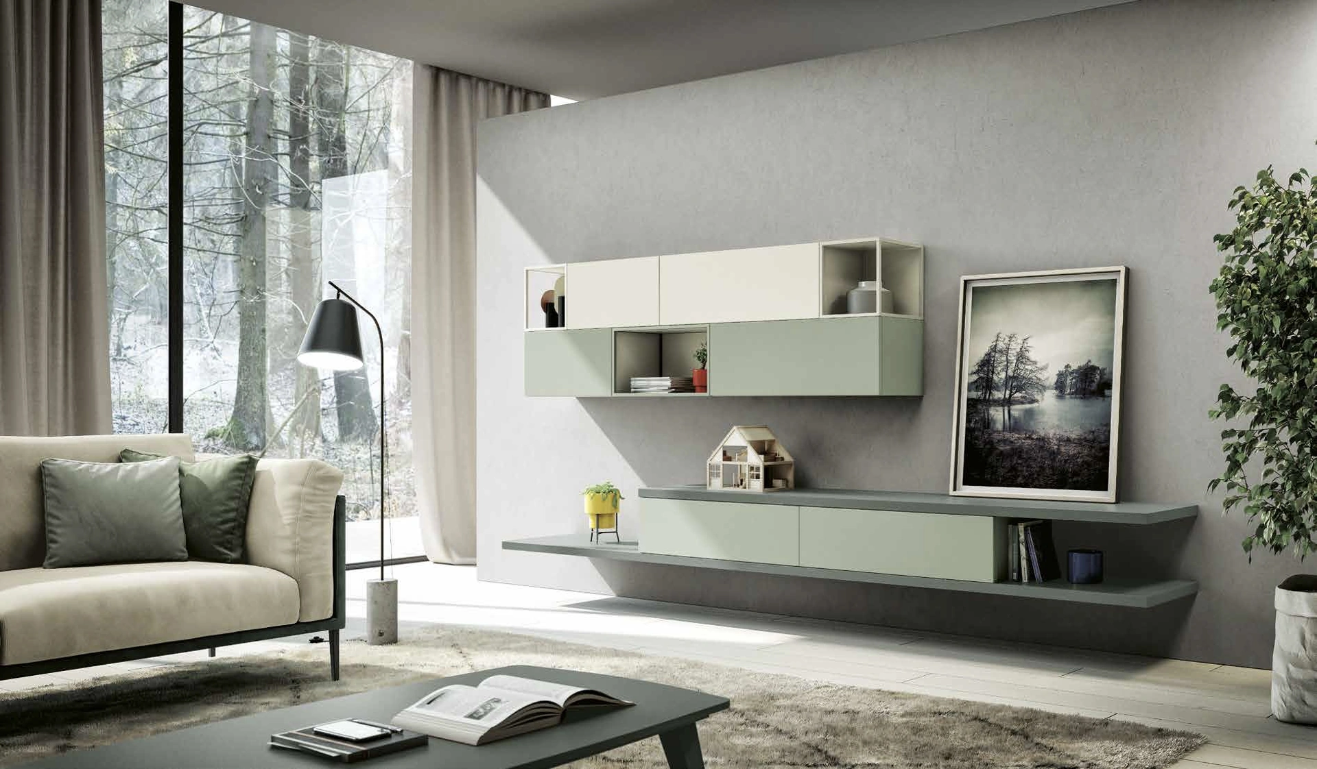 Parete Attrezzata sospesa Living 857 di Spagnol Mobili