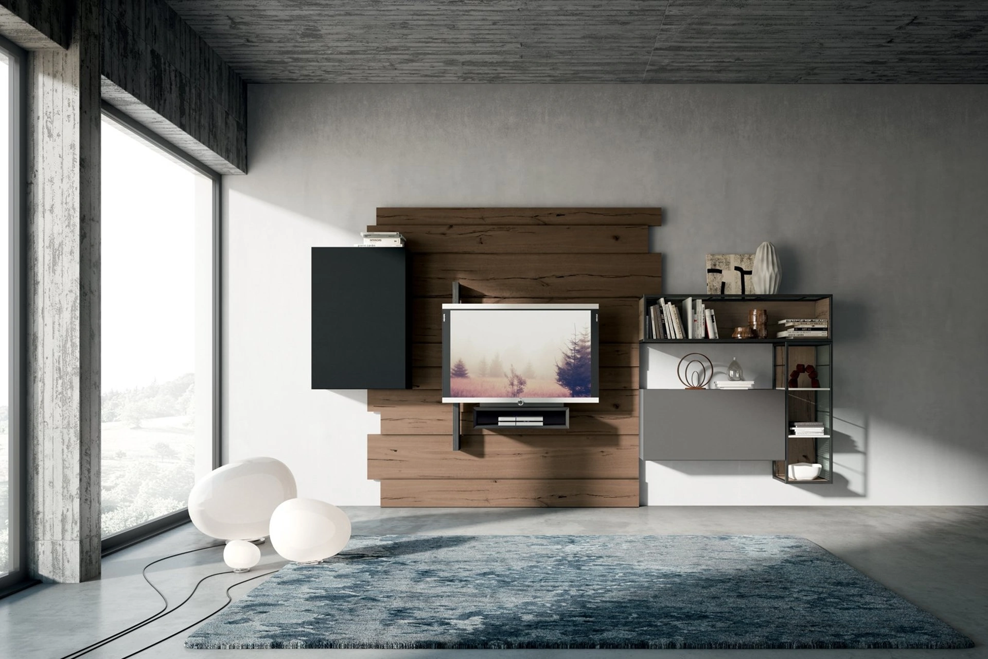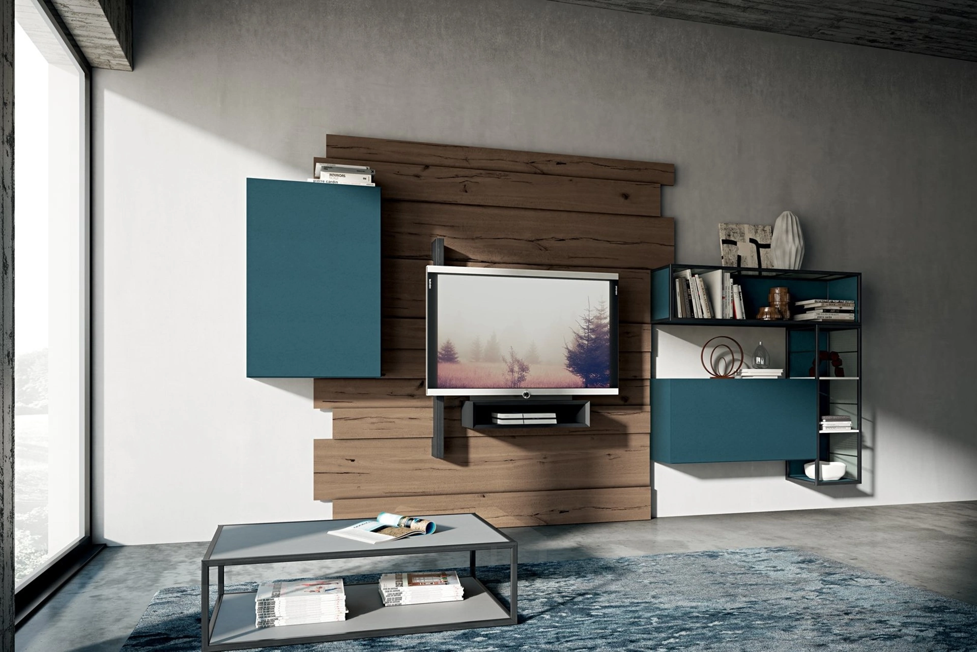 Quali elementi distintivi offre la parete attrezzata Fimar Rebel R 03?La Rebel R 03 di Fimar si caratterizza per la sua composizione modulare con basi, pensili e colonne. Integra soluzioni per moduli TV, mensole a giorno e ante con meccanismi diversi, garantendo funzionalità e design.