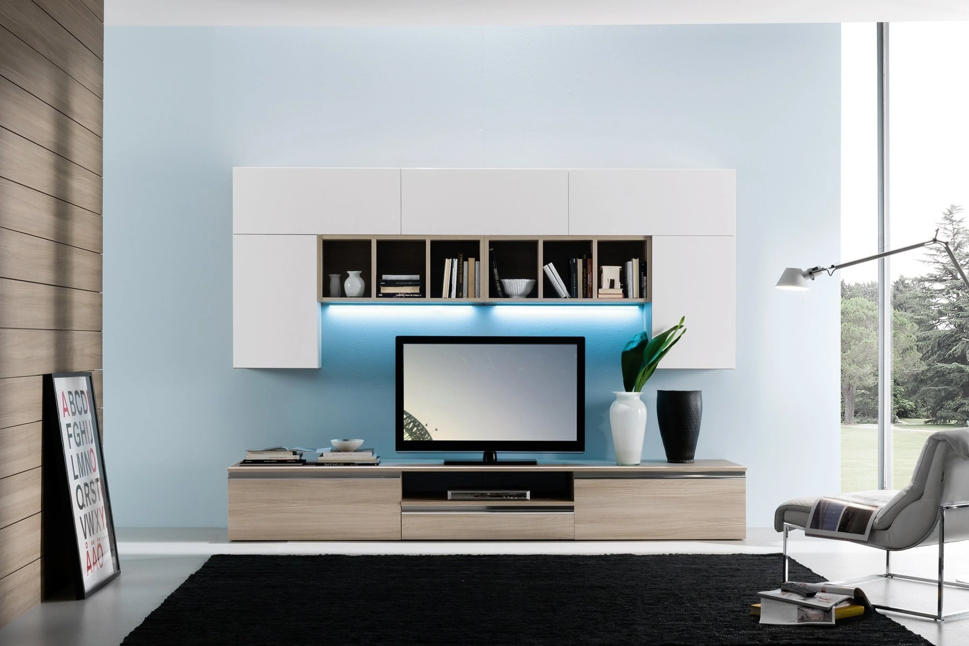 La parete attrezzata Spot Irma 01 può essere dotata di illuminazione integrata?Sì, la parete attrezzata Spot Irma 01 può essere progettata per includere sistemi di illuminazione LED integrata. Questo permette di valorizzare esteticamente gli elementi e creare un'atmosfera accogliente e funzionale nell'ambiente.