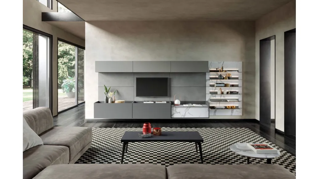 La Parete Attrezzata Skyline Relation above and below di Astor Mobili nell'immagine è una delle più originali soluzioni d’arredo sul mercato: componibilità personalizzabile e le varie possibilità di progettazione la rendono bella e di grande qualità. Astor Mobili produce inediti modelli di mobili soggiorno, diversi per stile e forme, texture e accessori: scopri in negozio l'Arredamento Casa delle migliori marche. I mobili soggiorno in laccato opaco dalle linee moderne come il modello nell'immagine sono davvero polivalenti e capaci di arredare il living valorizzando ogni angolo. Dato che il soggiorno deve essere uno spazio ben organizzato e bello a vedersi, sono molto utili alcuni arredi belli e funzionali come le Pareti Attrezzate. Lasciati affascinare da un ricco catalogo di arredi per la zona giorno e potrai trovare la parete attrezzata che fa al caso tuo.