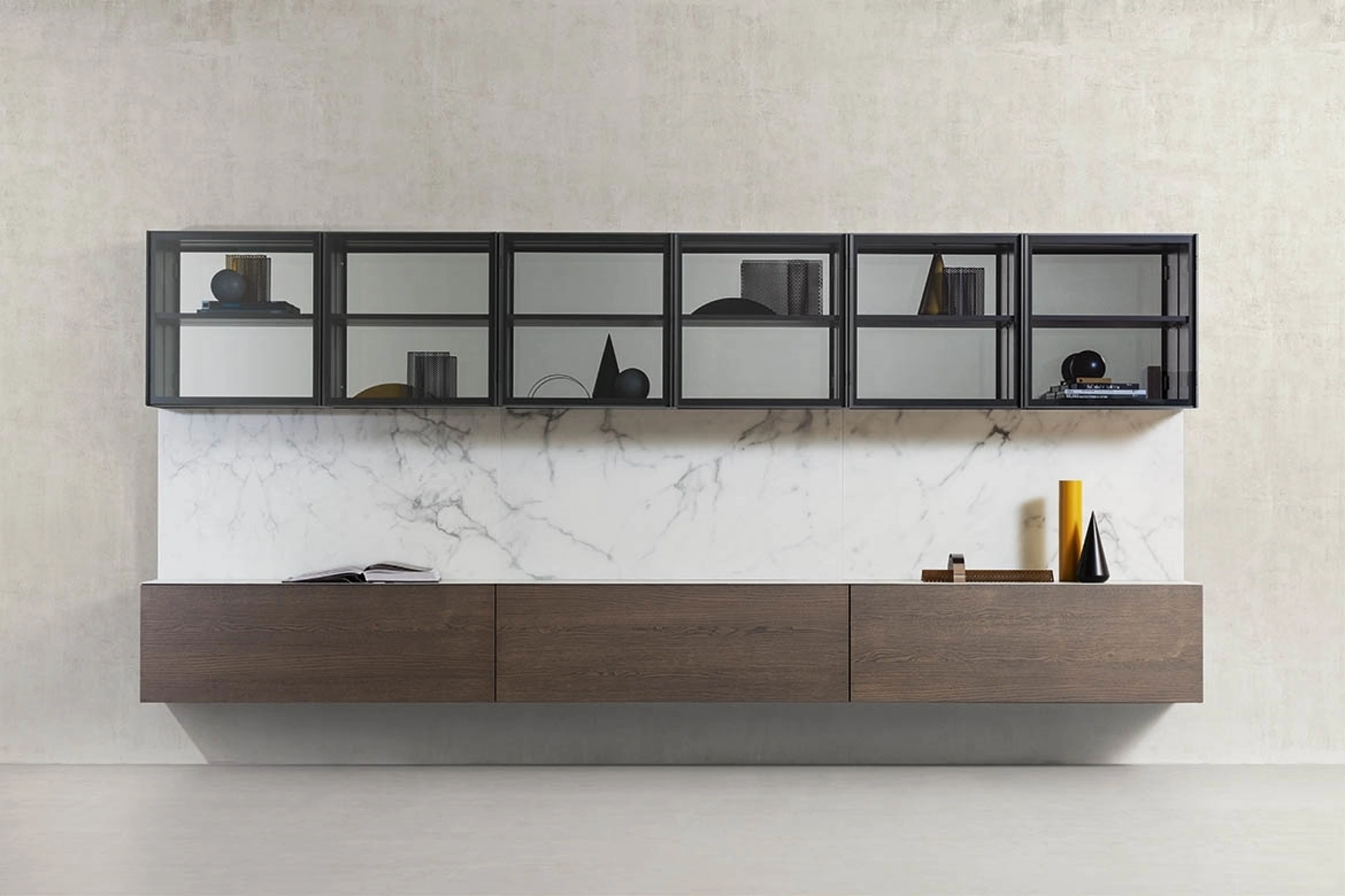 | Materiale: | Legno (Frassino Castano, altre essenze), laccato, materico, vetro, specchio, metallo, cuoio. |