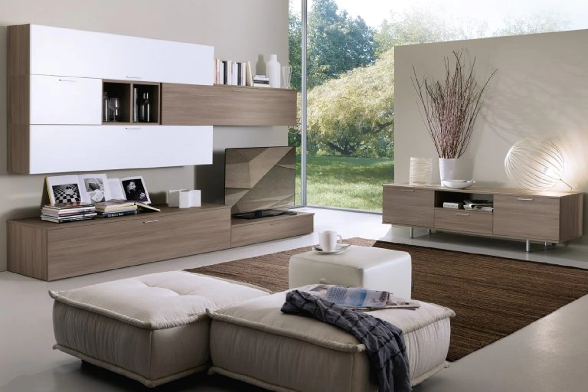 Parete attrezzata Spot Irma 08 di S75 per il soggiorno realizzata in melaminico