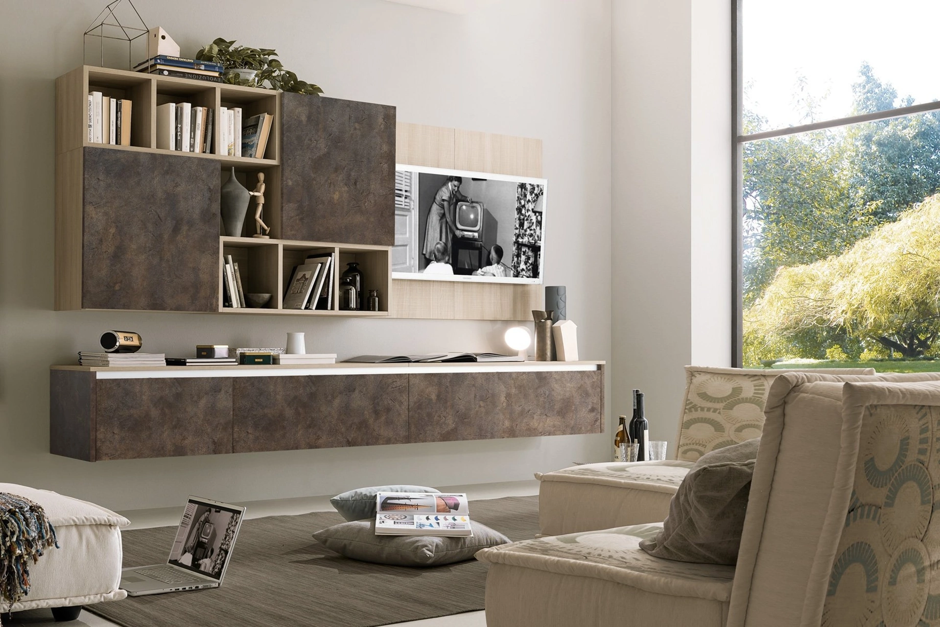 Arredi per la zona giorno e Pareti Attrezzate moderne S75: scopri il modello Supreme City 02 in melaminico mostrato in foto