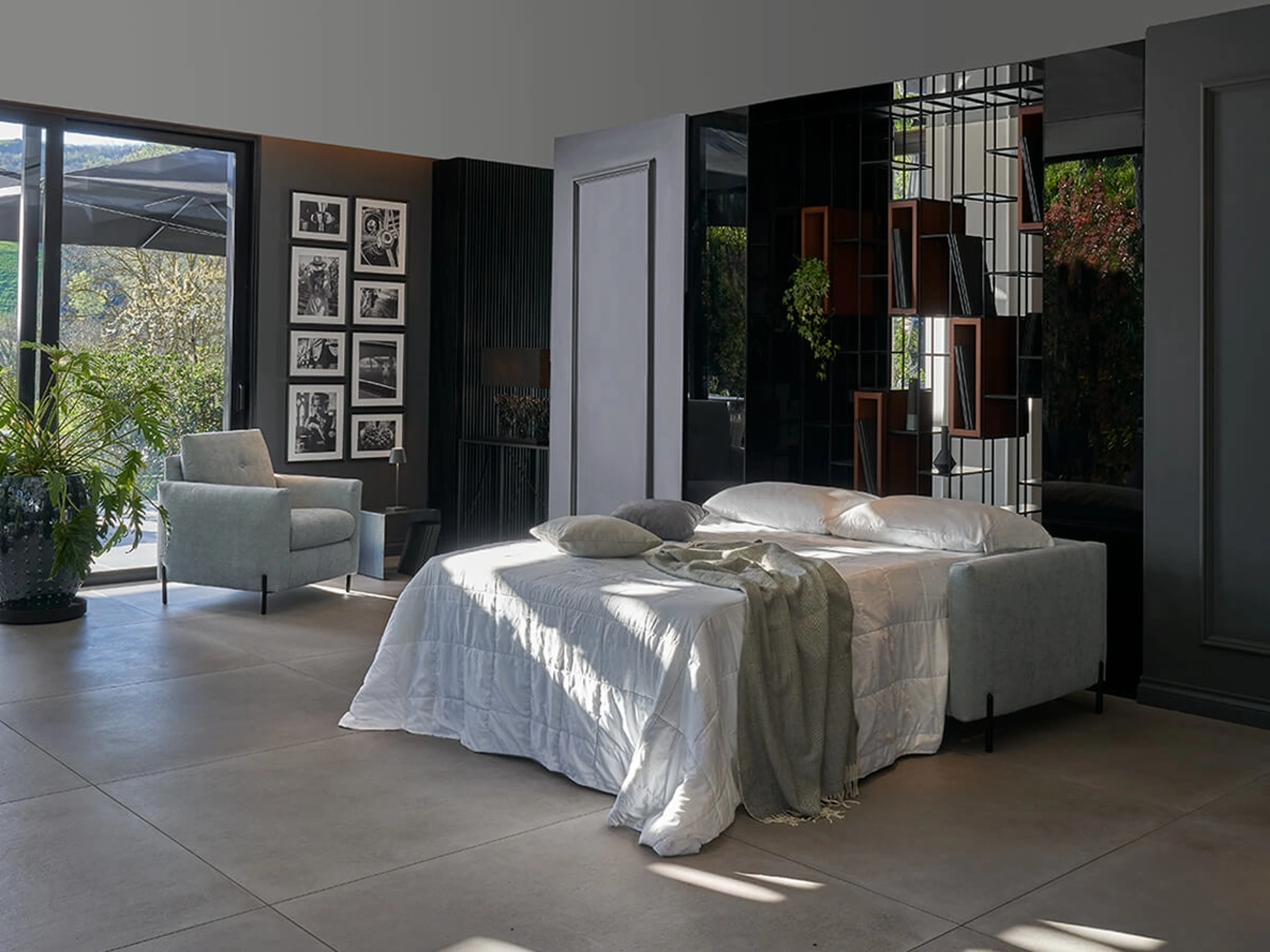 Nelle case attuali, in particolare nel soggiorno, non mancano mai salotti e divani, accoglienti pezzi d’arredo imprescindibili per assicurare il comfort tuo e di ogni possibile ospite. I momenti di relax e socialità nel soggiorno di ogni casa sono condivisi da amici e parenti grazie alla presenza di imbottiti ampi e comodi da disporre in un angolo, a centro stanza o addossati alla parete davanti alla televisione. Conta su un'ampia gamma di possibilità estetiche, dalle tonalità alle texture, dalle misure alle forme: i modelli con letto ti attendono. Nel nostro showroom, store manager del settore arredamento esperti ti accompagneranno alla scoperta delle più belle proposte di Salotti moderni anche rivestiti in in tessuto.