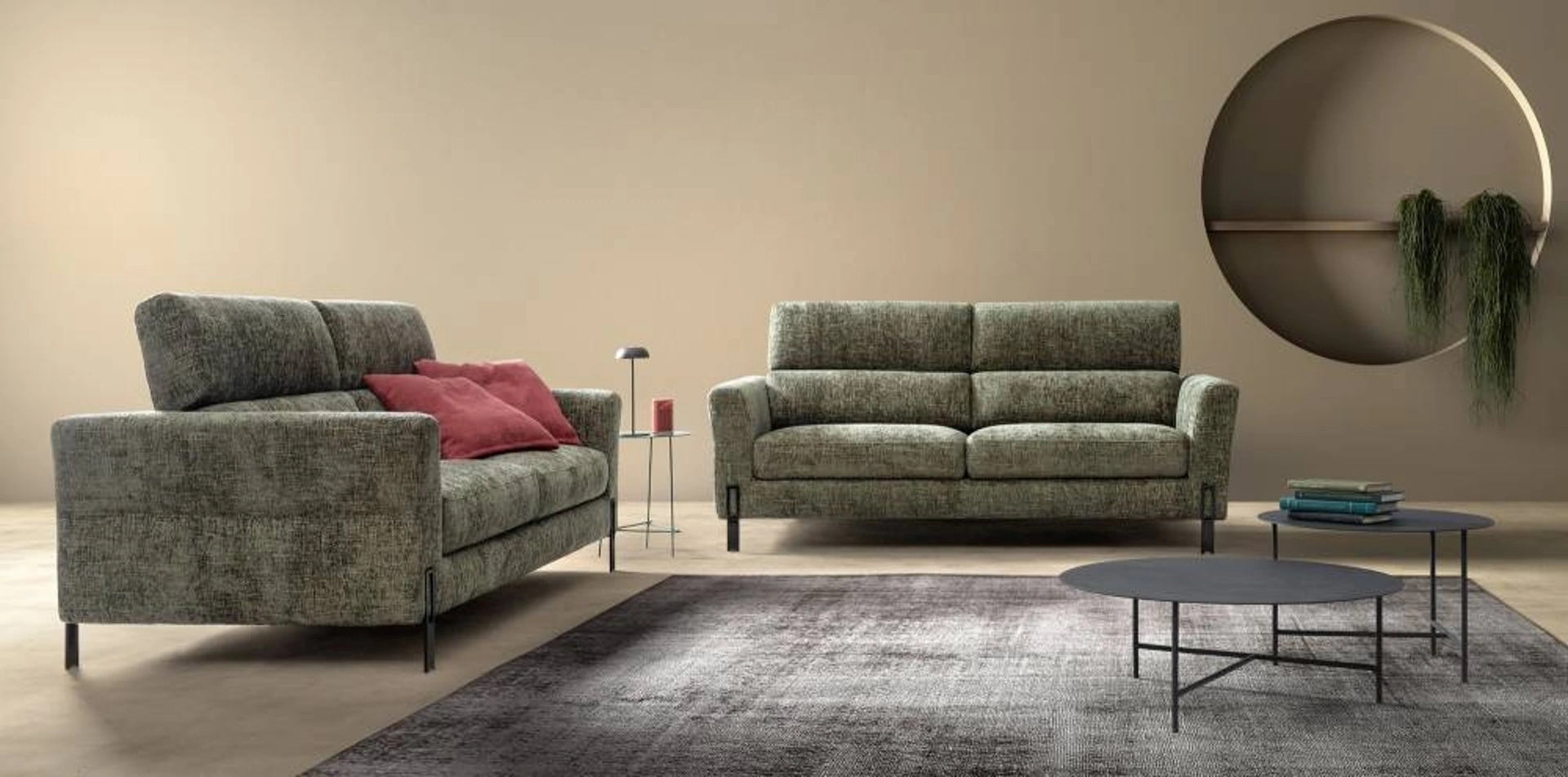 La struttura è robusta, realizzata in legno e agglomerato, con un'imbottitura di poliuretano espanso indeformabile avvolta in ovatta di poliestere. Disponibile con rivestimento in tessuto completamente sfoderabile o in pelle ed ecopelle parzialmente sfoderabile, per una facile manutenzione e un'estetica curata.