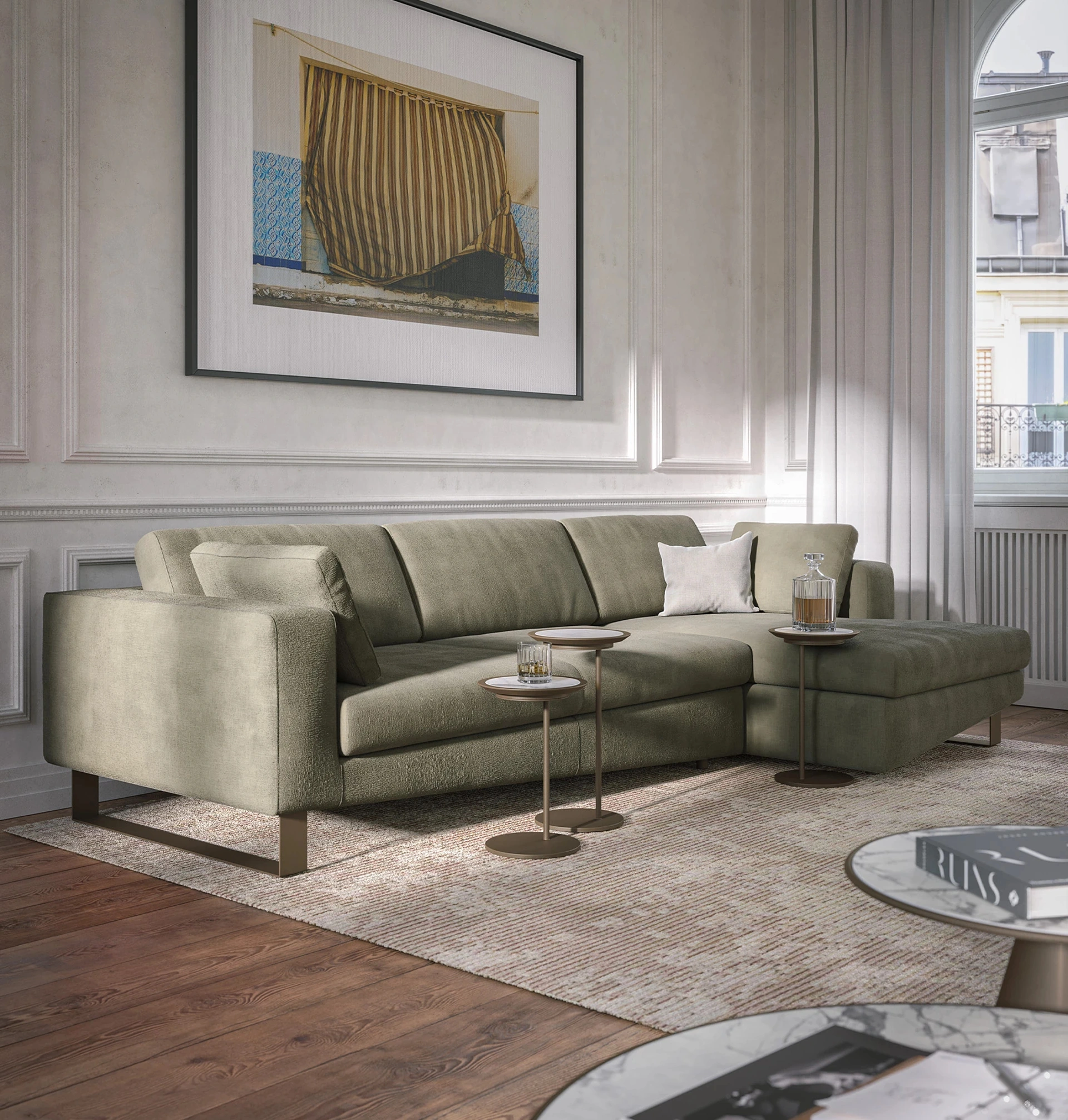 | Materiale: | Struttura in legno di abete e multistrato, Sistema di molleggio con cinghie elastiche, Pre-rivestimento in velluto, Rivestimento in tessuto (es. Kimono, Bouclé, Shade, Vega Velvet) o pelle (Ecopelle, Ecopelle Nabuk, Pelle, Pelle Nabuk) |