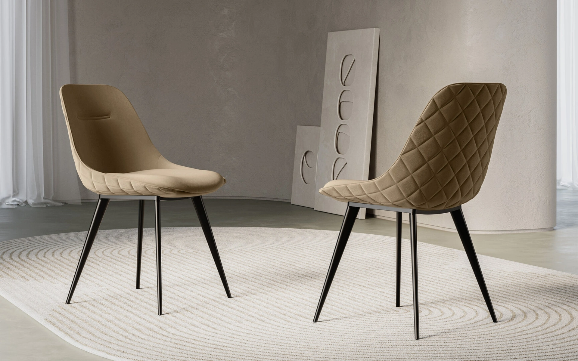 La sedia Nova di Arredo3 si caratterizza per un design intrinsecamente fluido, definito da forme morbide e prive di spigoli, che ne delineano un profilo elegante e contemporaneo. La struttura portante è realizzata in metallo verniciato nero, assicurando stabilità e una notevole leggerezza visiva. Il rivestimento in Econabuk, un materiale resistente e piacevole al tatto, contribuisce al comfort e all'estetica raffinata. Un dettaglio di spicco è la distintiva trapuntatura a rombi sul retro dello schienale, che aggiunge un elemento di sofisticazione artigianale. Grazie a queste caratteristiche tecniche e stilistiche, Nova si integra perfettamente in contesti diversificati quali sale da pranzo, soggiorni moderni o ambienti lavorativi che richiedono un tocco di design funzionale. L'accurata selezione dei materiali e l'ingegnerizzazione del prodotto ne garantiscono durabilità e prestazioni ottimali nel tempo.