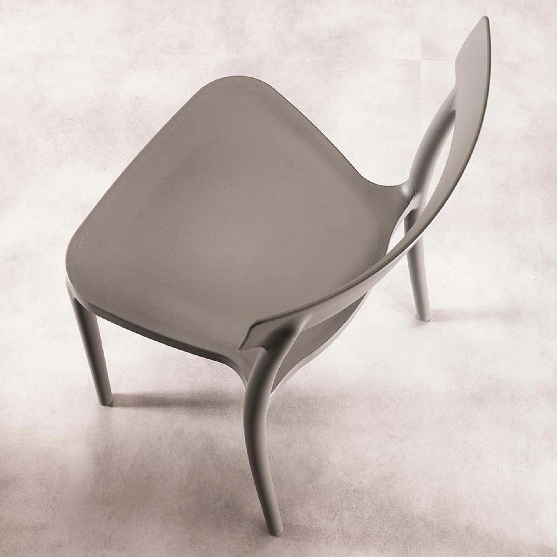 Sedia moderna con parte superiore dello schienale leggermente incurvata in plastica