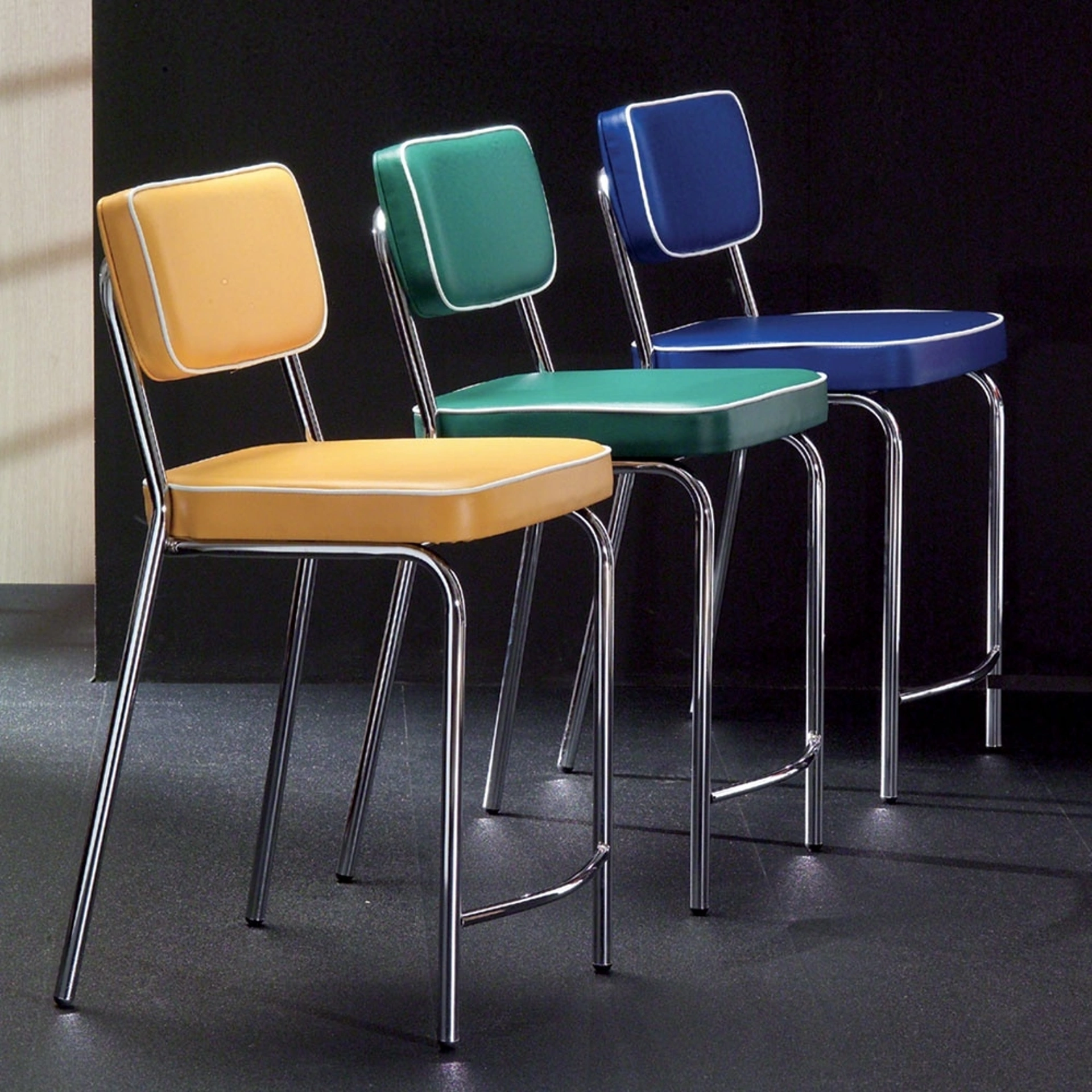 Scopri l'esclusivo sgabello Hollywood Stool 75 di La Seggiola, ora disponibile per te presso il nostro showroom Rusconi Arredamenti s.r.l. a Cirimido. Questo pezzo d'arredo si distingue per il suo design versatile e le finiture di alta qualità, perfetto per aggiungere un tocco di stile al tuo ambiente. Potrai apprezzare la versione Monocromatica, che offre sedile e schienale rivestiti in ecopelle, proposti in una vivace palette cromatica che include arancio, blu, verde, giallo, rosso, oltre ai classici bianco con bordino nero e nero con coste bianche. La solida struttura in metallo cromato garantisce stabilità e durata. Per chi desidera un'estetica più dinamica e audace, è disponibile anche la variante SPRINT, caratterizzata da un'ecopelle bicolore che si abbina elegantemente alla medesima struttura cromata. Presso Rusconi Arredamenti s.r.l., siamo dedicati a offrirti il meglio del design contemporaneo, con un servizio clienti impeccabile e un'ampia scelta di soluzioni per ogni esigenza di arredo. Ti aspettiamo per una consulenza personalizzata e per scoprire tutte le opzioni disponibili.