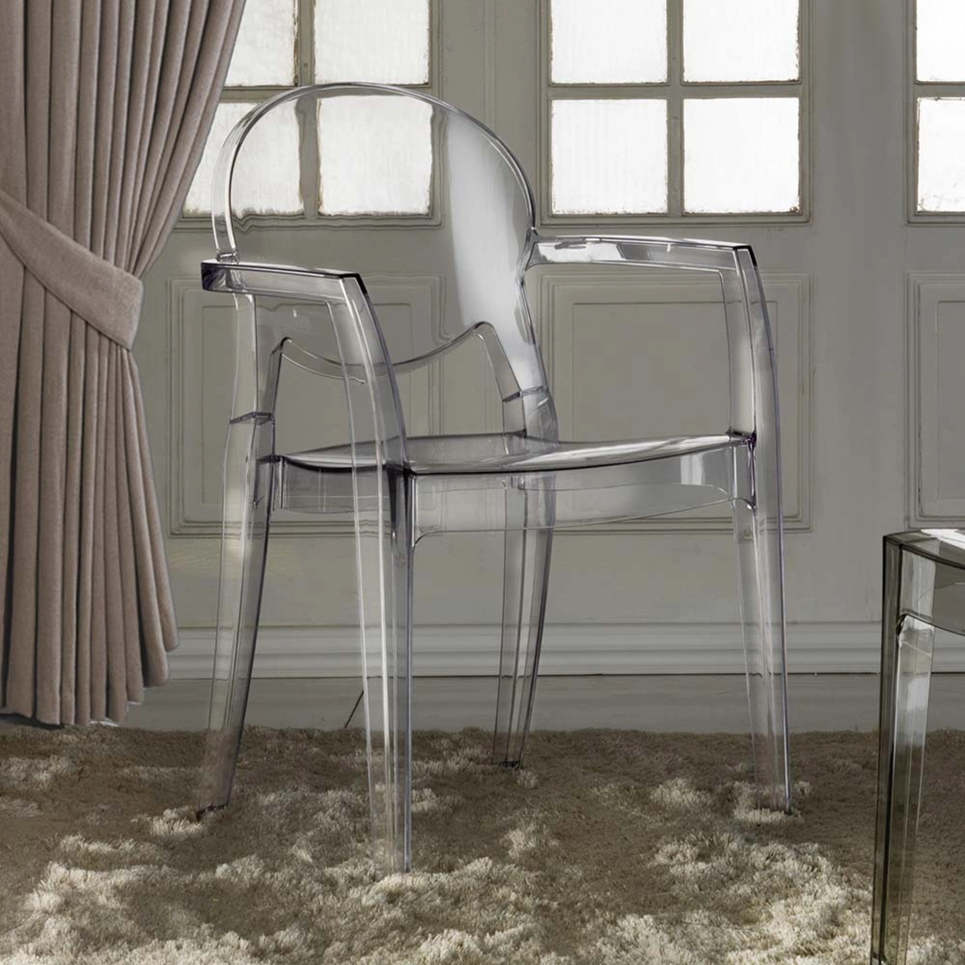 La sedia Ink-B di La Seggiola è una poltroncina dal design essenziale, interamente forgiata in policarbonato di alta qualità. Questo materiale, noto per la sua robustezza e trasparenza, la rende una soluzione durevole e visivamente leggera, disponibile nelle eleganti tonalità trasparente e fumè. Le sue misure sono studiate per un'ergonomia ottimale: altezza totale di 87 cm, altezza della seduta di 47 cm, e braccioli posizionati a 68 cm. Con una larghezza di 57 cm e una profondità di 54 cm, si adatta con versatilità a diversi ambienti. Il prodotto è concepito per una logistica efficiente, con imballaggi che contengono 4 pezzi. La manutenzione è semplificata, richiedendo solo un panno morbido e acqua per preservarne le caratteristiche estetiche e funzionali, evitando l'uso di solventi aggressivi. La sua concezione versatile la rende una scelta eccellente per chi cerca arredi capaci di adattarsi a molteplici esigenze stilistiche e funzionali.