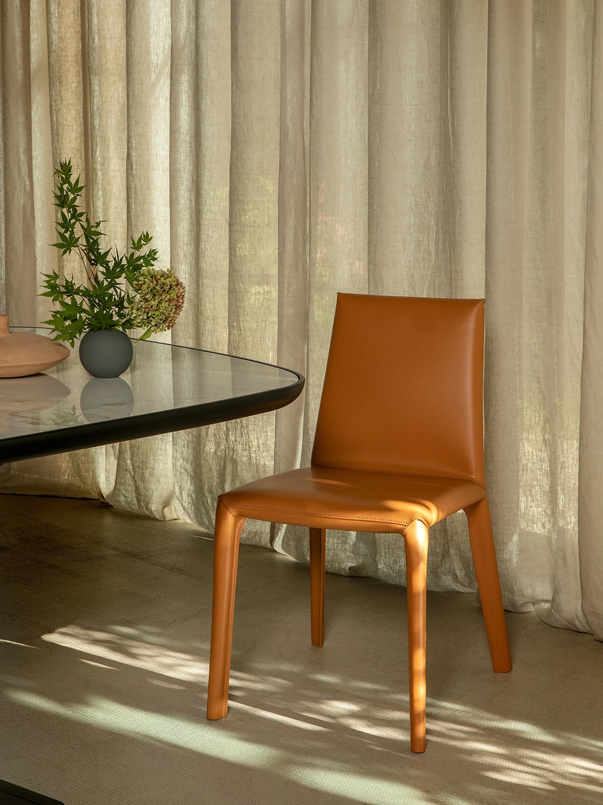 La sedia Lisa Cuoio è disponibile in diverse finiture o materiali oltre al cuoio?La sedia Lisa Cuoio è caratterizzata dal suo pregiato rivestimento in cuoio, che ne definisce l'identità. Presso la nostra materioteca potrai comunque visionare diversi campioni di materiali e finiture per altri arredi o per esplorare opzioni complementari.