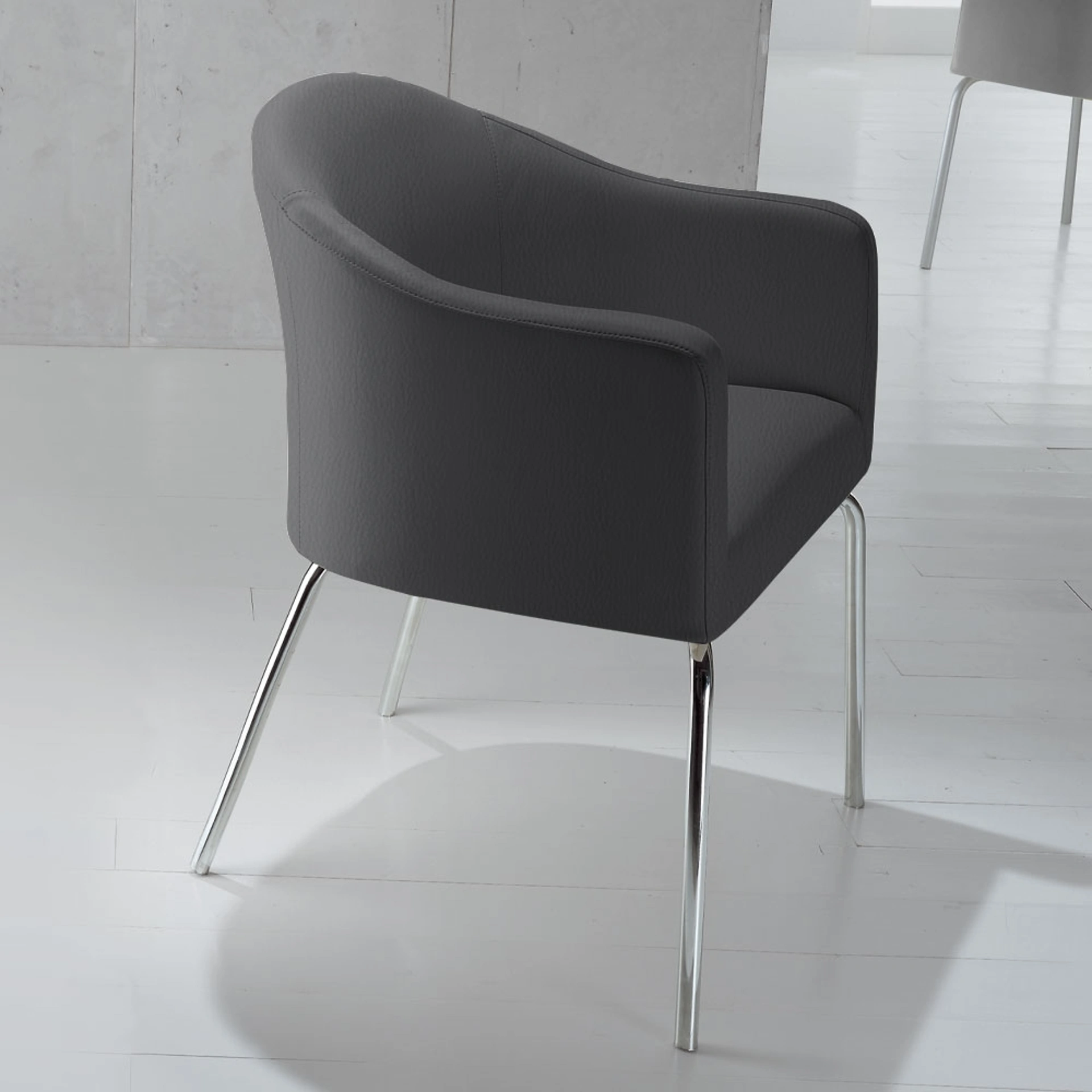 Sedia imbottita rivestita di ecopelle con struttura in metallo cromato
