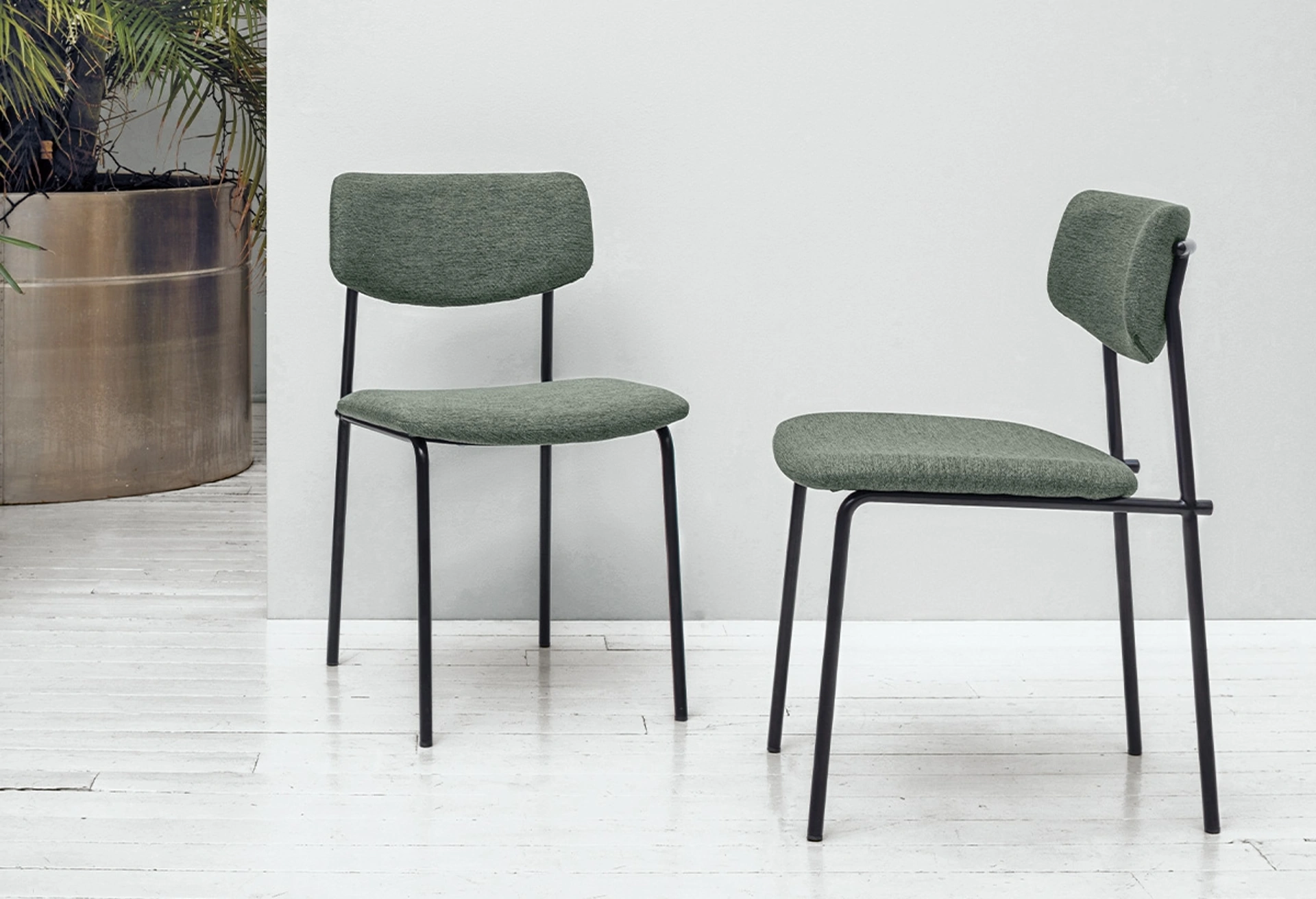 | Materiale: | Struttura a 4 gambe in metallo verniciato nero. Seduta imbottita e rivestita in tessuto Clean-Touch o Eco-Tex. |