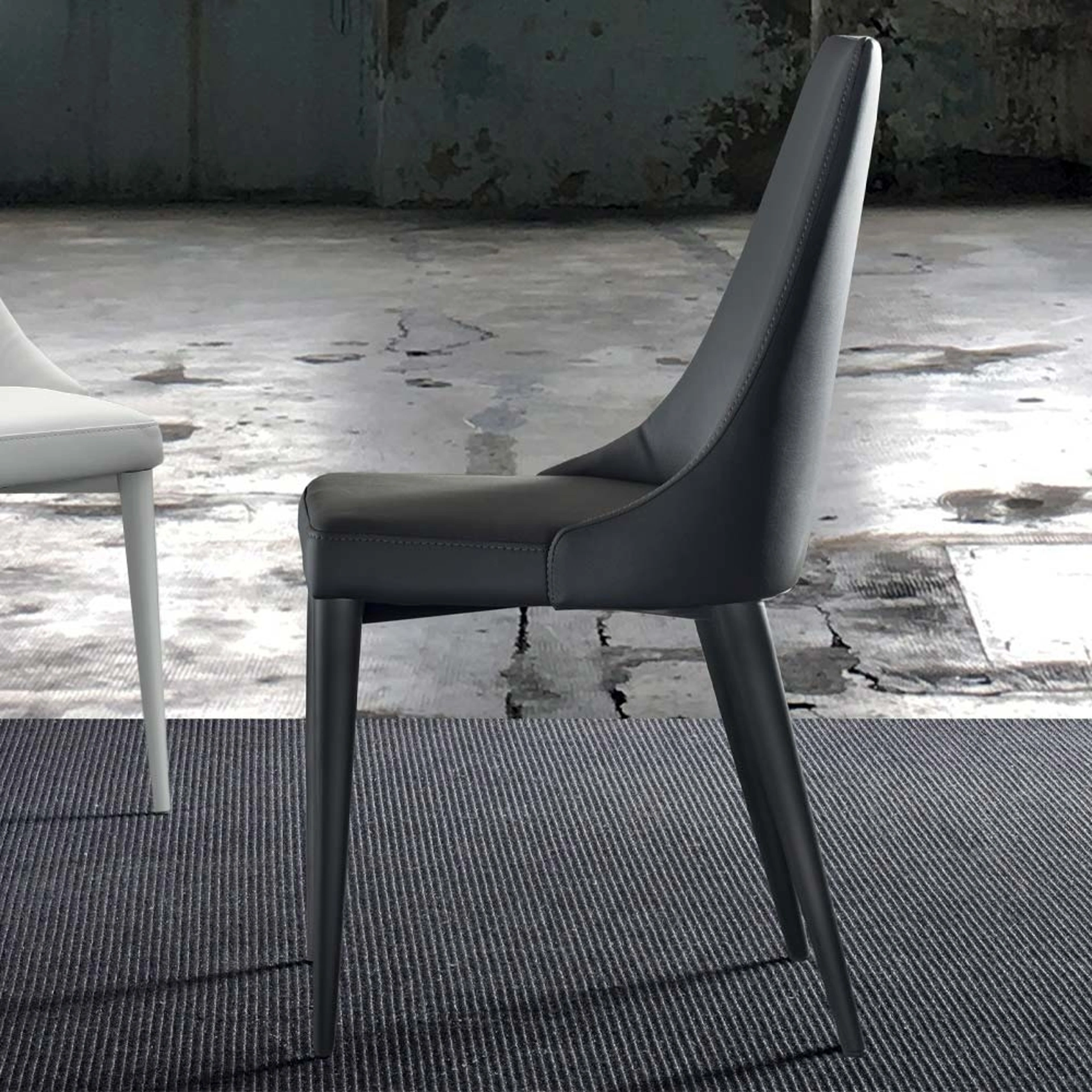 Sedia ricercata in ecopelle monocromatica con cuciture a vista