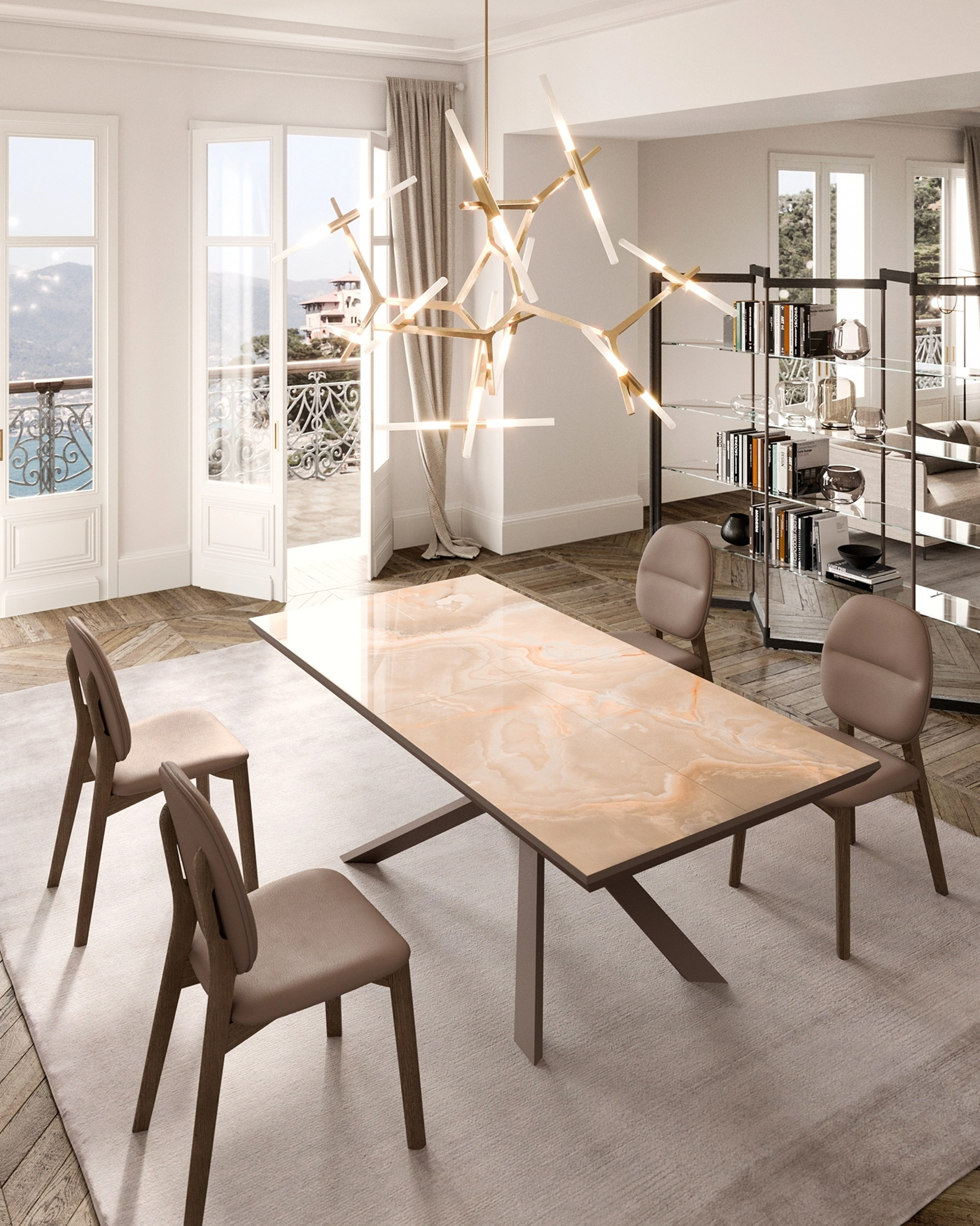 Tavolo 4x4 Allungabile Marble Glass