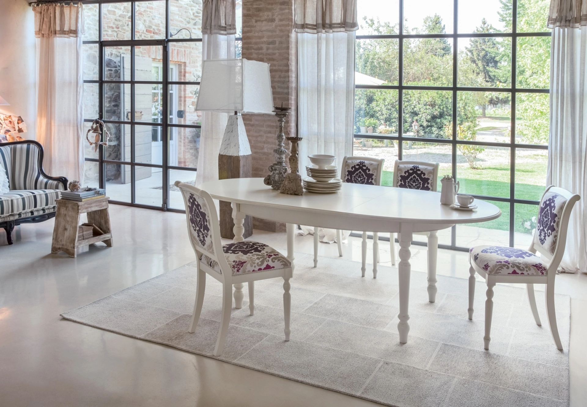 Modello dalla forma rotonda si apre a libro per le allunghe diventando ovale