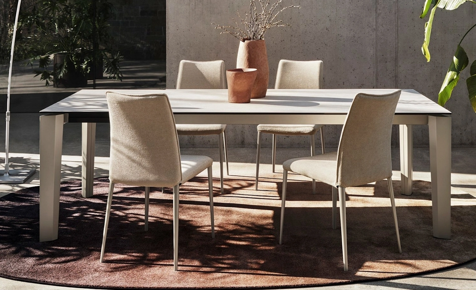 Il tavolo Delta CS4097-R si distingue per la sua struttura in metallo con gambe a sezione obliqua e un sistema di allungamento meccanico che mantiene il perimetro libero per il massimo comfort. La versatilità è garantita dalle opzioni di piano in ceramica, vetro o legno. Affidarsi a materiali certificati è la base per un investimento durevole nel tempo.