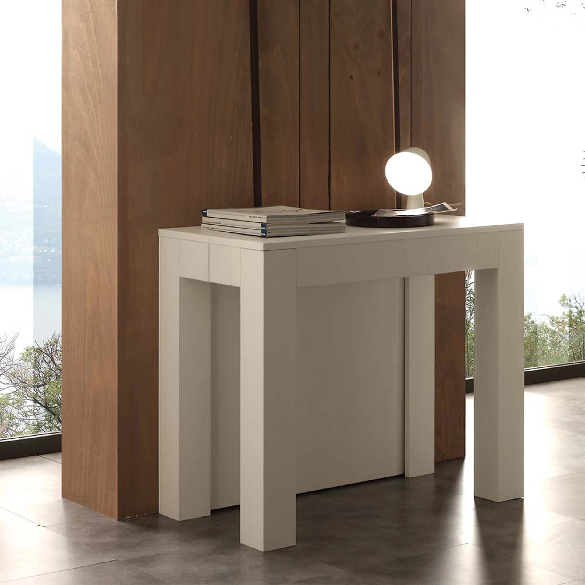 Il tavolo consolle allungabile Cargo Art. 733 di La Seggiola incarna la fusione perfetta tra estetica minimalista e massima funzionalità. La sua struttura, interamente in nobilitato folding bianco poro aperto, garantisce un'eleganza senza tempo e un'eccezionale robustezza, eliminando giunzioni visibili grazie all'innovativa tecnologia folding. Progettato per adattarsi a ogni esigenza, include allunghe perfettamente integrate che permettono di trasformare rapidamente la consolle in un ampio tavolo da pranzo. Una gamba di sostegno a scomparsa assicura una stabilità impeccabile anche alla massima estensione, mentre le quattro allunghe (ciascuna di 62,2 x 86 cm) sono comodamente riponibili a parte. Questo sistema modulare offre una soluzione intelligente per ottimizzare gli spazi senza rinunciare allo stile. Scegli la qualità e l'innovazione di La Seggiola per un arredamento funzionale e duraturo.