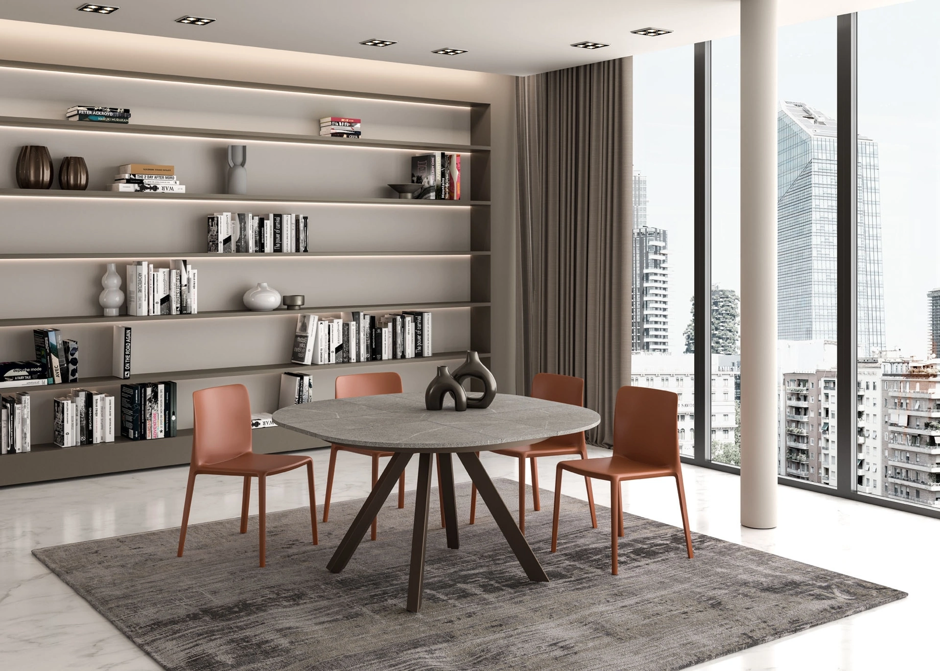 Il Tavolo Rotondo PETALO di Easyline incarna l'eccellenza del design moderno, proponendo una soluzione circolare con una distintiva capacità espansiva. Dotato di un innovativo meccanismo in alluminio, il piano del tavolo si trasforma con fluidità, aumentando sia in lunghezza che in larghezza per adattarsi a diverse esigenze di spazio e convivialità. La sua struttura si compone di robuste gambe in metallo abbinate a un piano in legno di alta qualità, elementi che ne sottolineano la durabilità e l'estetica raffinata. Ogni dettaglio è stato curato per offrire un'esperienza d'uso superiore, con un focus sulla durabilità e l'adattabilità spaziale.