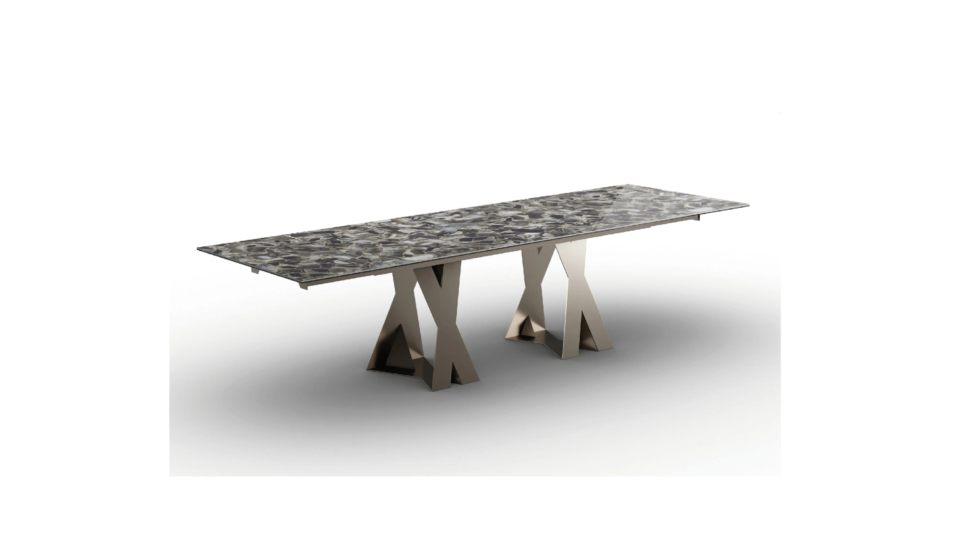 Il Tavolo Francis Allungabile, emblema della Collezione Temptation di Zamagna, rappresenta una sintesi avanzata di estetica contemporanea e funzionalità. Progettato con precisione da esperti artigiani italiani, questo complemento d'arredo si distingue per la sua notevole versatilità, adattandosi con eleganza a diverse configurazioni spaziali. La sua struttura solida è caratterizzata da gambe in metallo, disponibili in raffinate finiture quali nero opaco, bronzo e titanio, che supportano piani in vetro ceramica, inclusa la variante Agata Black Lucido, o in legno. La disponibilità in molteplici forme e dimensioni, dalle versioni a botte (es. L. 240 x P. 120 x h.75 cm) a quelle rettangolari (es. L. 200 x P. 100 x h.75 cm), ne esalta la capacità di integrarsi in qualsiasi ambiente moderno, garantendo al contempo praticità d'uso e un'atmosfera ricercata. Questa accurata combinazione di design innovativo e selezione di materiali di alta qualità assicura un prodotto di duratura eccellenza, progettato per soddisfare le esigenze estetiche e funzionali più elevate.
