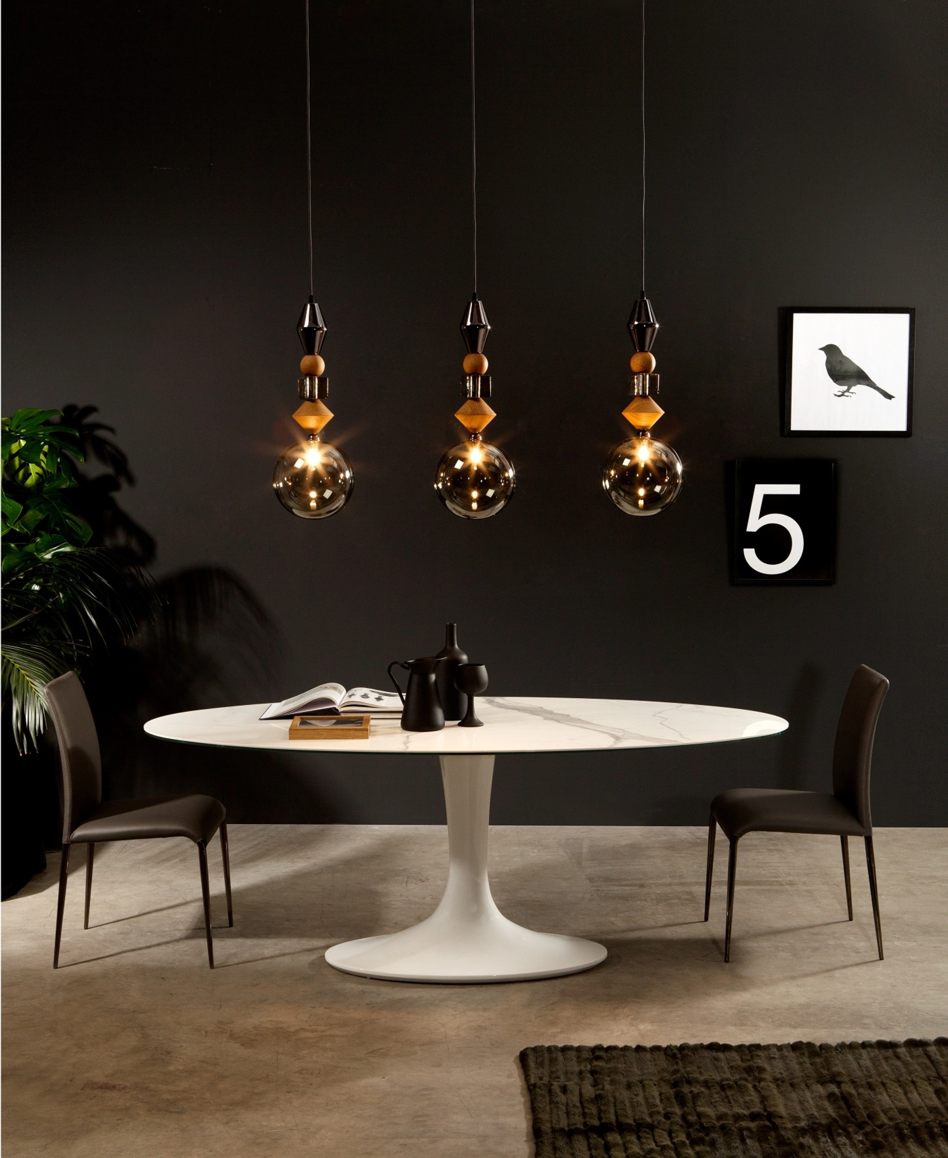 Il Tavolo Imperial di Tonin Casa si distingue per la sua estetica scultorea, evocando la forma slanciata di uno stelo. La base, sapientemente realizzata in agglomerato di marmo con finitura lucida o opaca, si espande alla base per poi affusolarsi verso l'alto, definendo un equilibrio tra pienezza e vuoto. Questa struttura solida supporta piani disponibili in vetro temperato (trasparente, fumé, extrachiaro) o in gres porcellanato, offerti in una ricca palette di colorazioni e texture, dal classico Statuario Altissimo all'esotico Saphir Noir. Le opzioni di personalizzazione includono basi in Bianco, Nero, Champagne e piani in diverse tonalità cromatiche. Con dimensioni standard di 180 cm di lunghezza, 105 cm di profondità e 75 cm di altezza, il Tavolo Imperial è concepito per integrarsi con versatilità in ambienti contemporanei. La cura nella selezione dei materiali e l'attenzione ai dettagli costruttivi assicurano un investimento duraturo nel tempo, mantenendo inalterato il valore estetico e funzionale del complemento d'arredo.