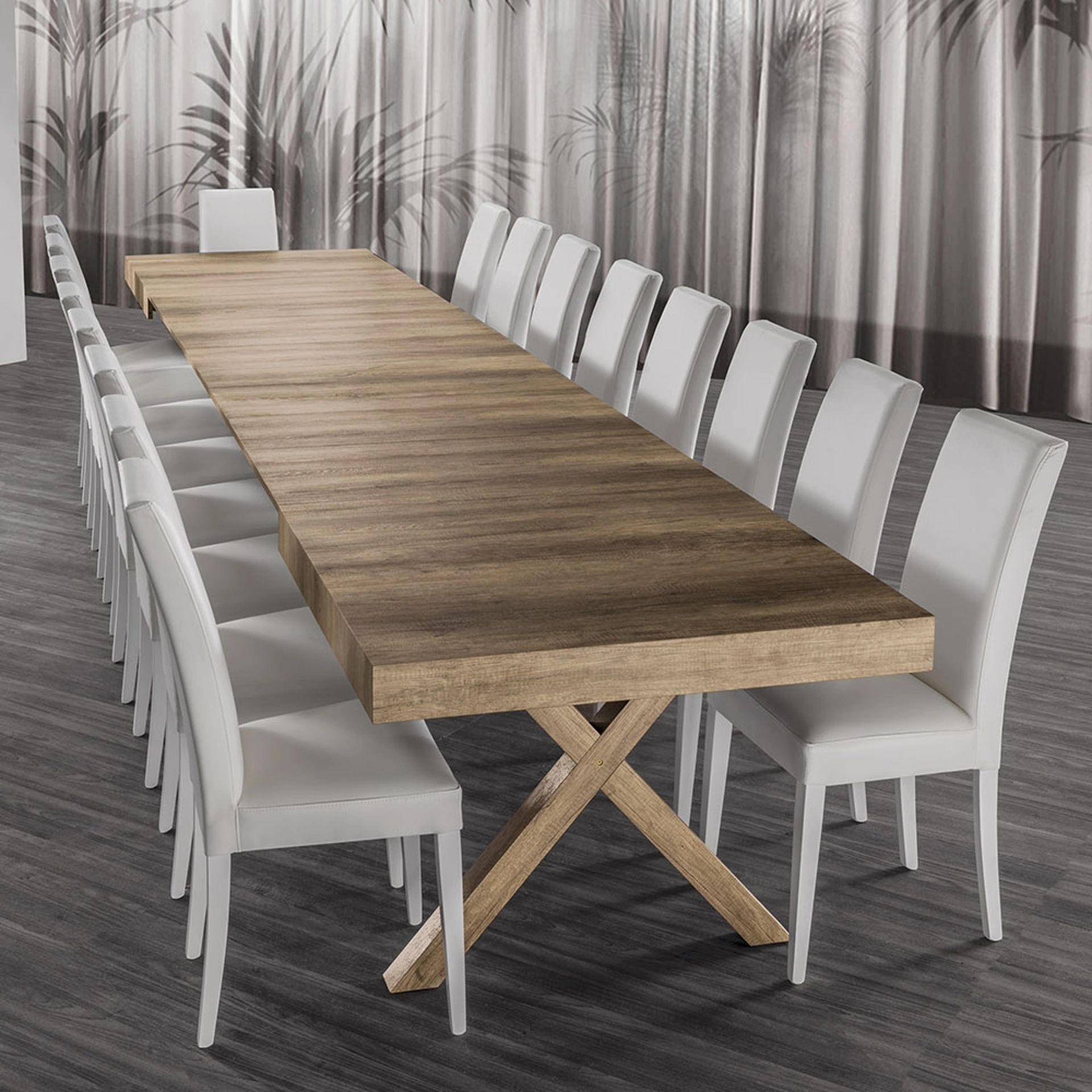 Scopri il Tavolo allungabile Copernico Classic, un pezzo d'arredamento essenziale per ogni casa moderna, disponibile presso Rusconi Arredamenti s.r.l. a Cirimido. Questo tavolo, esempio di eccellenza Made in Italy firmato La Seggiola, unisce un design raffinato a una funzionalità superiore. Le sue robuste gambe in massello di faggio, sapientemente rivestite, si abbinano perfettamente al piano nobilitato, disponibile nelle eleganti finiture bianco poro aperto o rovere nodato. Progettato per massima versatilità, offre due opzioni di dimensione per accogliere comodamente fino a 14 o 18 commensali, rendendolo ideale per ogni occasione. Il nostro showroom a Cirimido si conferma il punto di riferimento per l'arredamento di alta qualità, offrendo soluzioni che soddisfano le esigenze di stile e praticità per tutta la provincia di Como e le aree circostanti.
