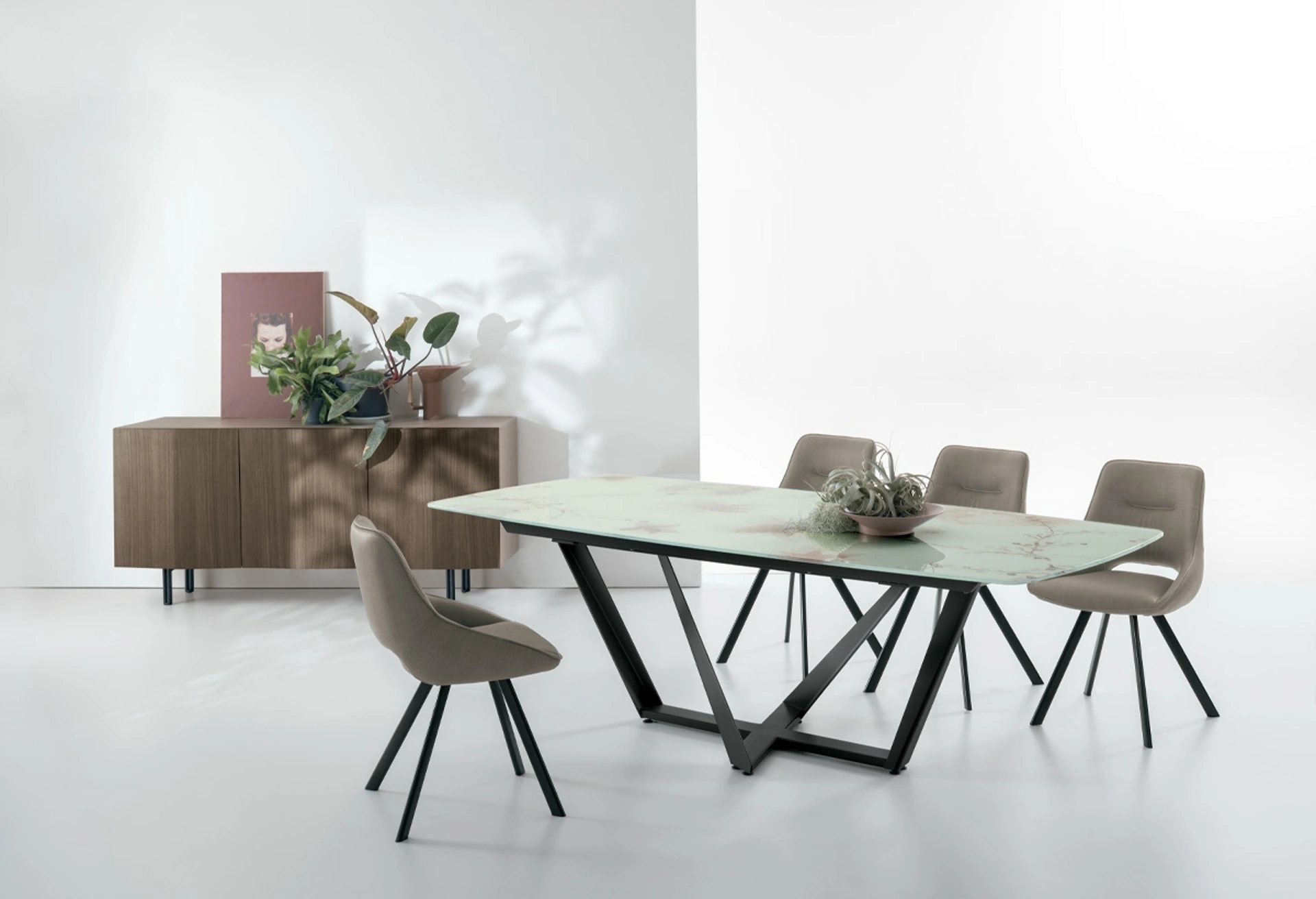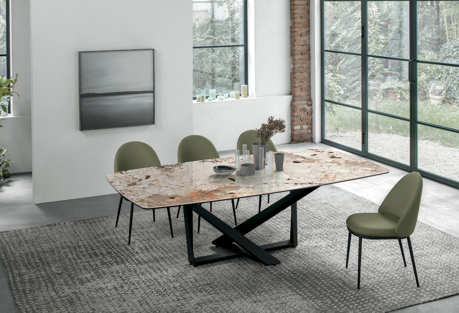 Il tavolo Tavolo allungabile Priamo di Target Point è l'emblema della progettazione avanzata nel settore dell'arredamento. La sua struttura si basa su un'innovativa intelaiatura in metallo, con direttrici incrociate che non solo ne definiscono il carattere scultoreo, ma ne assicurano anche una stabilità superiore. Le finiture disponibili per il basamento, tra cui spazzolato, bianco, grafite e marrone vintage, offrono ampie possibilità di integrazione stilistica. La superficie del tavolo può essere configurata con materiali di pregio: gres porcellanato in diverse texture (Grafite, effetto marmo Emperador, Carrara, Arabescato), legno pregiato, vetro liscio o vetro ondulato, ciascuno selezionato per resistenza e impatto visivo. Con opzioni di estensione che permettono di ospitare fino a 12 commensali e dimensioni modulari (es. da 160x90 a 240x90 cm), questo tavolo è progettato per adattarsi dinamicamente a ogni esigenza spaziale e funzionale. Questo prodotto è stato concepito per offrire un comfort superiore e una qualità costruttiva senza compromessi, posizionandosi come una soluzione d'arredo di alto profilo per ambienti che richiedono il meglio in termini di design e funzionalità.