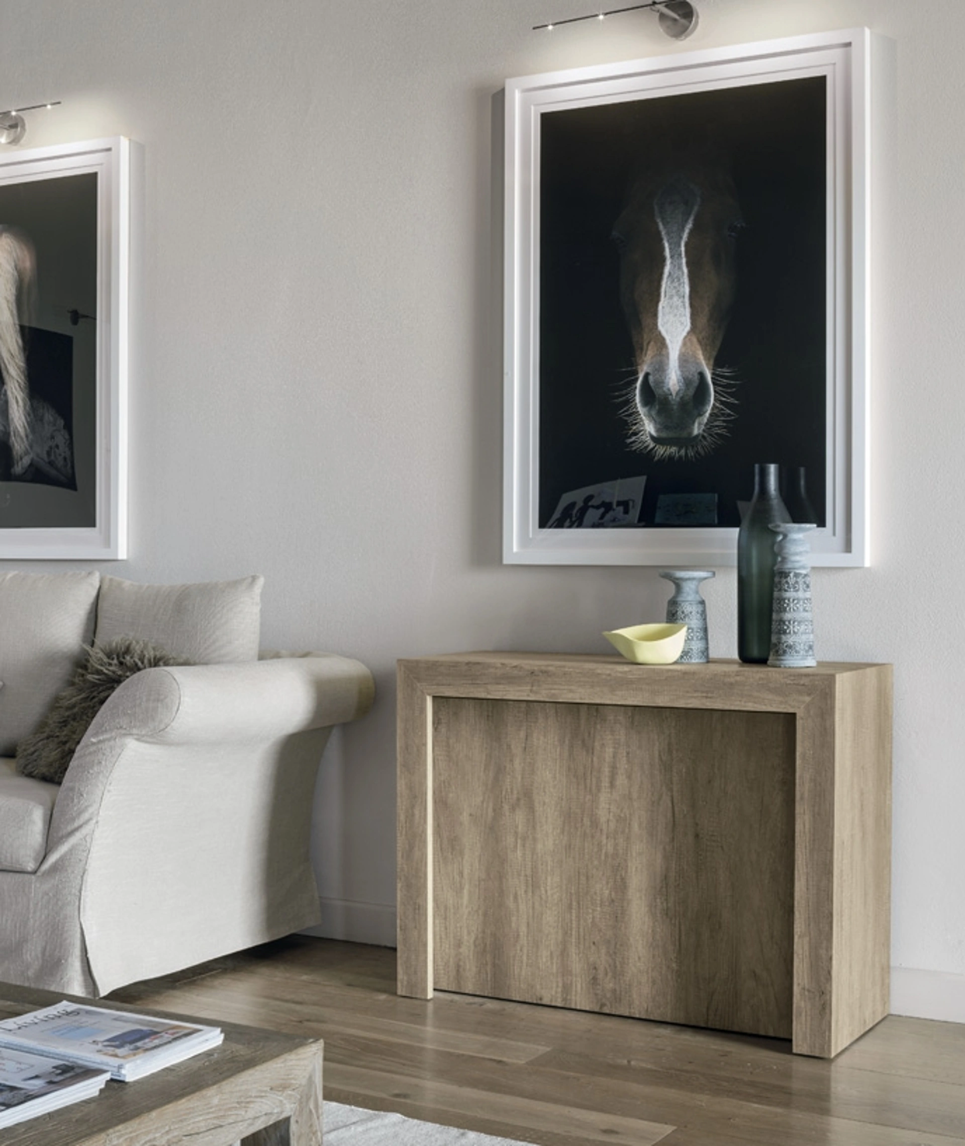 Scopri l'incredibile versatilità della consolle Pandora di Target Point, un tavolo allungabile progettato per accogliere ogni tuo ospite con stile e praticità. Questo pezzo unico è ora disponibile per la visione e l'acquisto presso il nostro showroom Rusconi Arredamenti s.r.l. a Cirimido. Con una profondità di soli 46 cm quando è chiusa, la consolle Pandora si trasforma magicamente in un imponente tavolo da ben 5 metri, grazie alle sue allunghe estraibili in laminato. Le diverse finiture disponibili, dal laminato spazzolato all'elegante effetto legno, la rendono perfetta per ambienti sia rustici che moderni. Vieni a trovarci per toccare con mano la qualità e le soluzioni di design che offriamo, siamo facilmente raggiungibili per tutti i clienti della zona e delle aree circostanti.