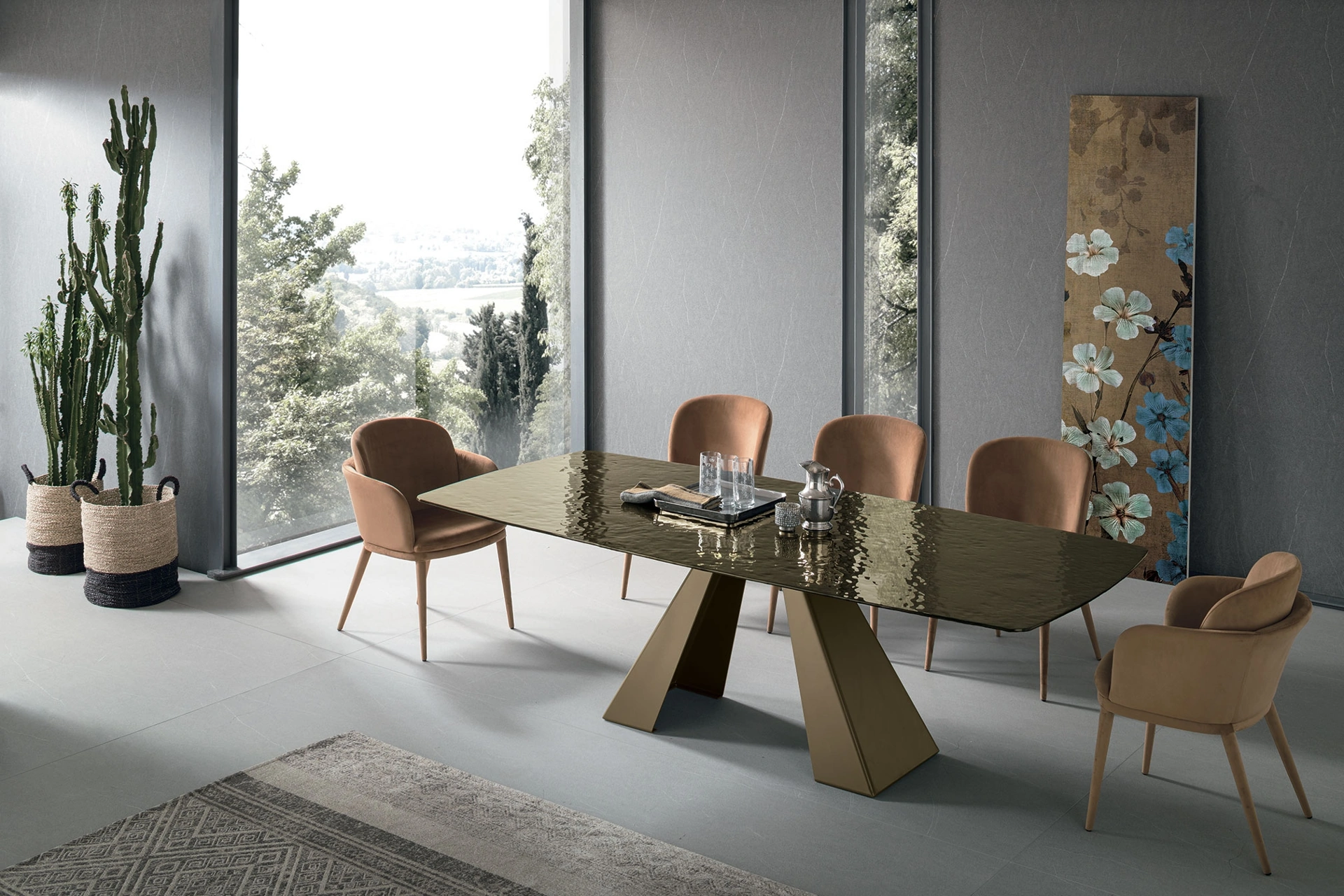 Se desideri un tavolo da pranzo di elevata qualità, contattaci e ricevi informazioni e preventivi sul modello mostrato in foto. Tavolo Taurus in vetro ondulato di Target Point: realizzato in materiali pregiati è caratterizzato dalle forme decise del top e da un basamento elegante e sofisticato. Il noto e conosciuto brand Target Point, specialista nella produzione di mobili in vetro, ha scelto per la sua collezione una vasta gamma di finiture, forme e tonalità. Un modello come quello nell'immagine, in abbinamento alle giuste sedute, saprà completare il mood delle stanze di casa dedicate in assoluto all'ospitalità. Ideali per dare vita a degli accostamenti unici con sedute e complementi design, i Tavoli fissi del brand sono soluzioni tra le più belle in commercio, ideali per il living e la cucina.