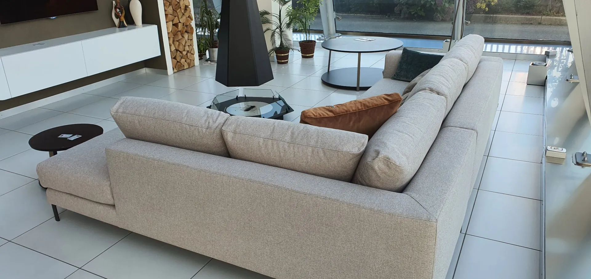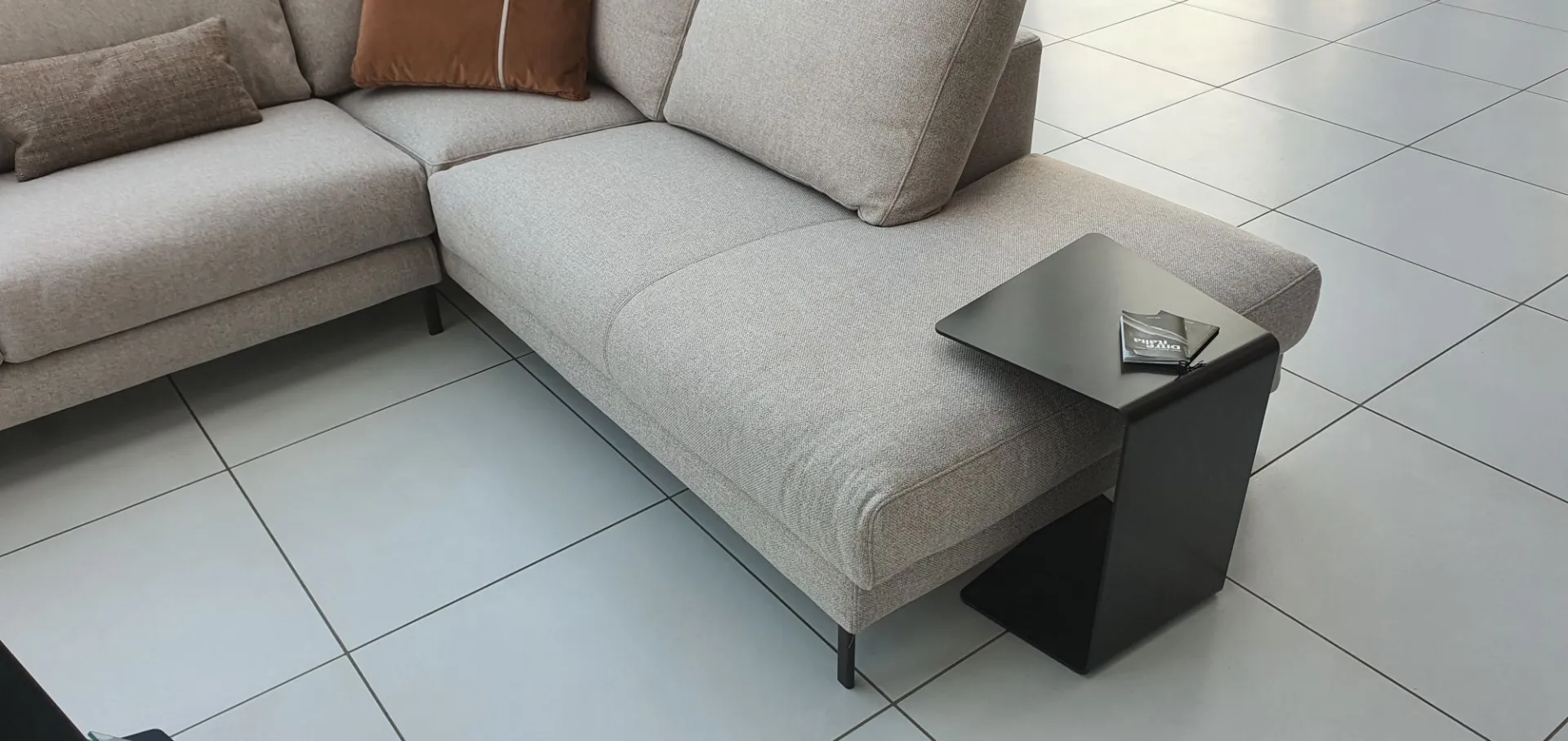 Il divano ARTIS si caratterizza per la struttura rialzata che consente una facile pulizia senza essere spostato, il piedino a ponte metallico in finitura Testa di Moro ne valorizza le forme ed il profilo.