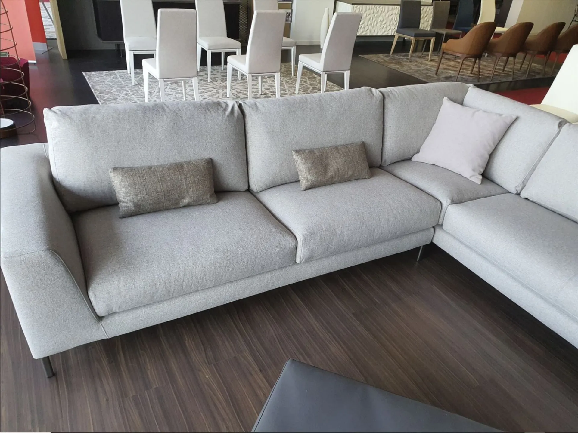 La composizione misura cm. L.314xP.234xH.80 ed è possibile inserire cuscini poggiatesta come anche accessori quali tavolini servetto con finitura uguale ai piedini del divano e cuscini d'arredo (I cuscini d'arredo mostrati nelle foto sono opzionali)