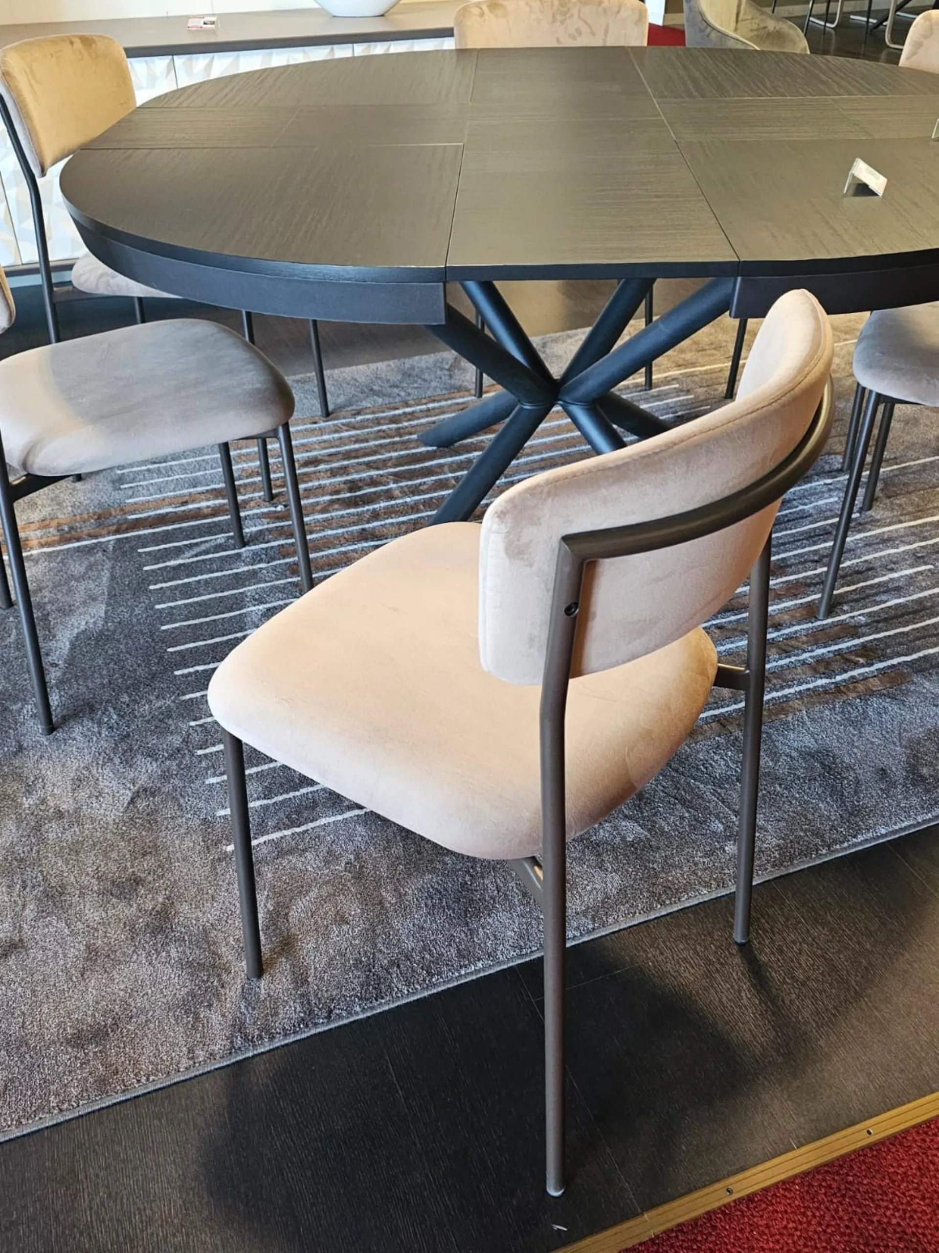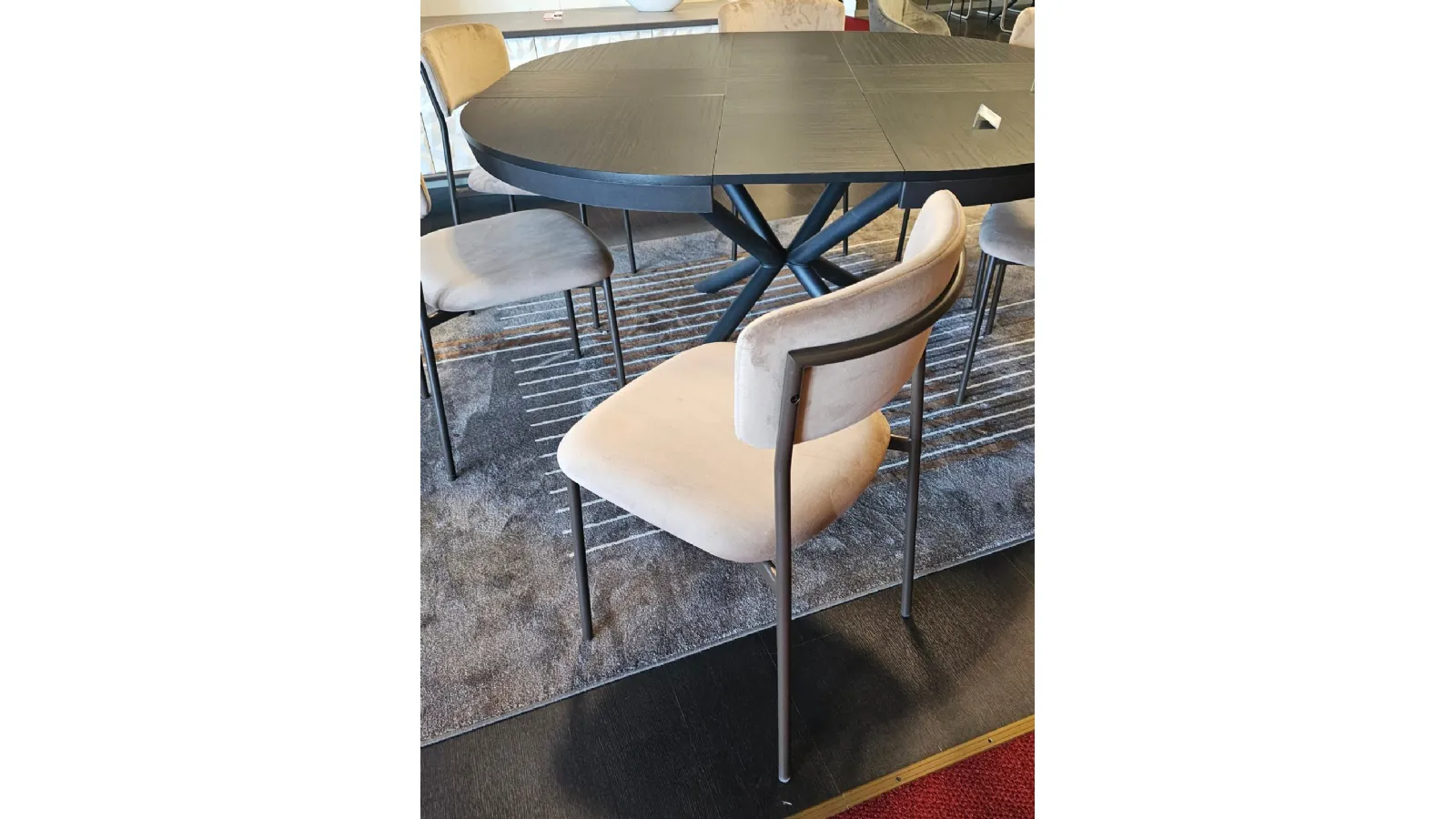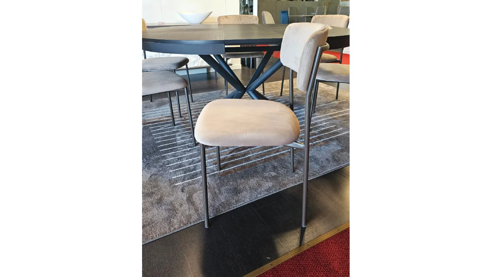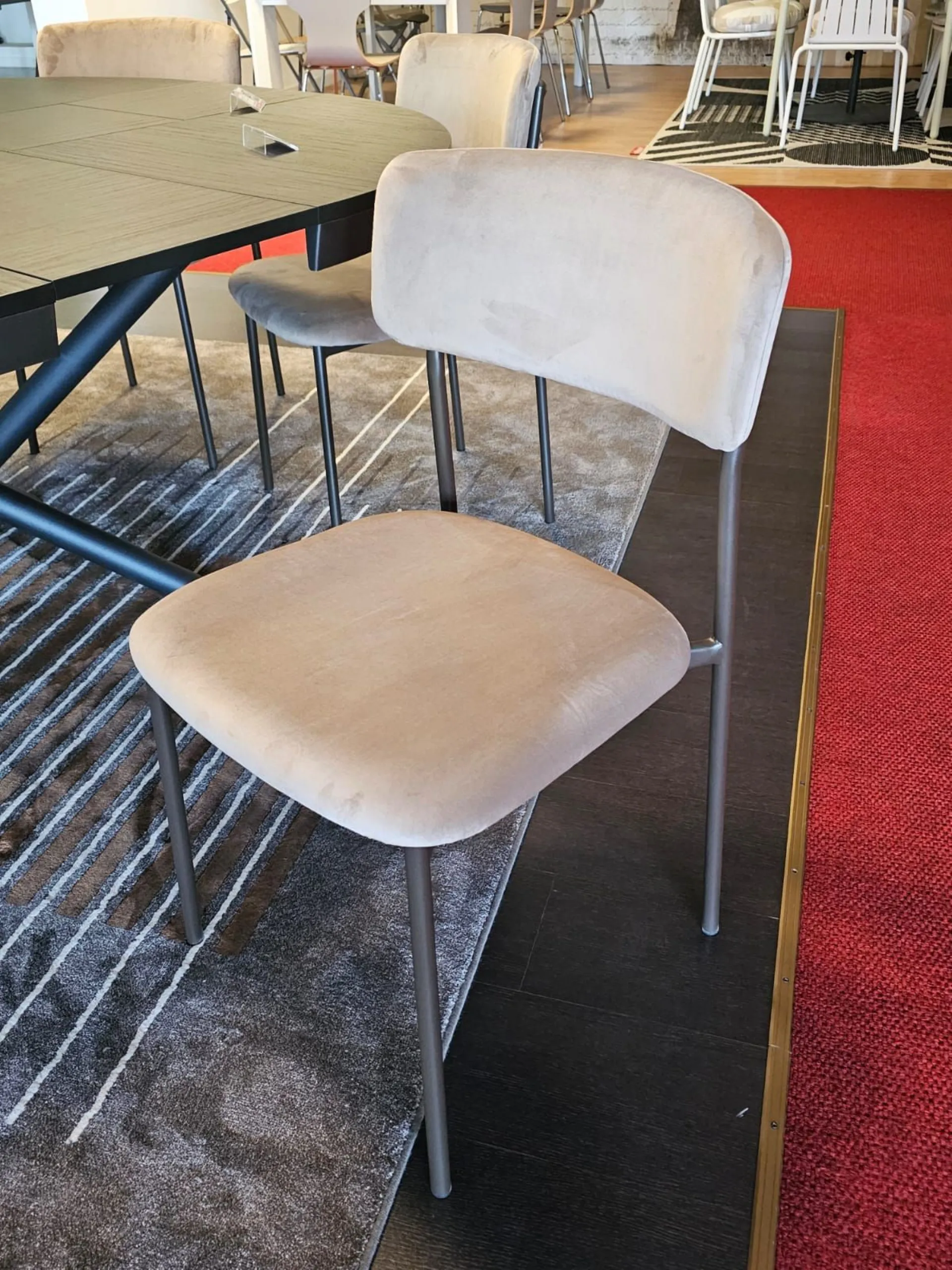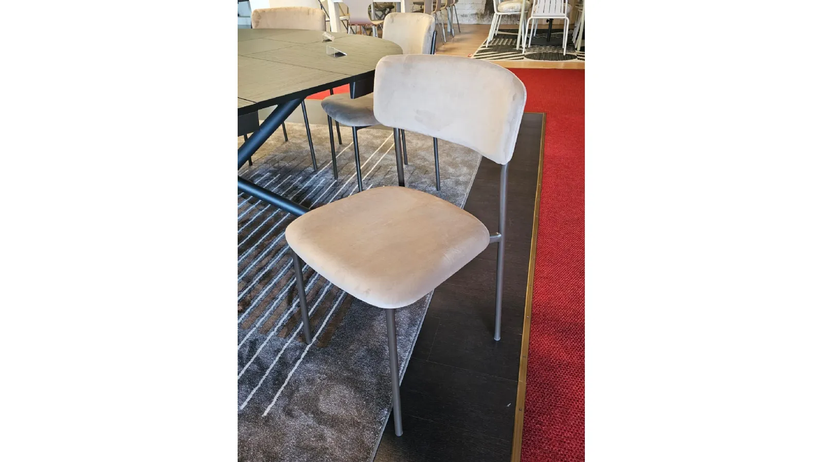 Sedia mod.AURA imbottita e rivestita in tessuto VE03 VELLUTO colore castoro e struttura in metallo MT98 VERNICIATO GRAFITE OPACO