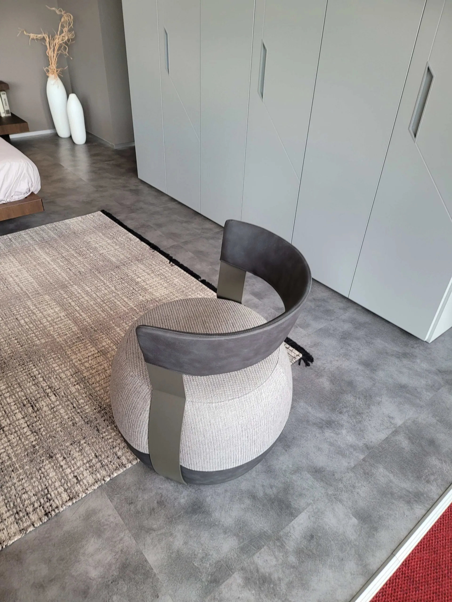 Poltrona BARRIQUE con rivestimento in tessuto e in ecopelle color grigio