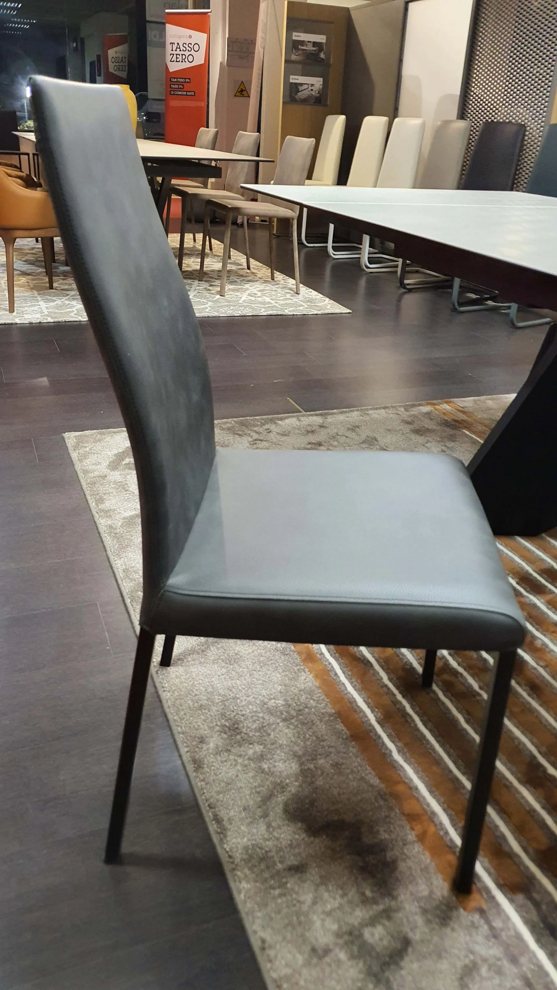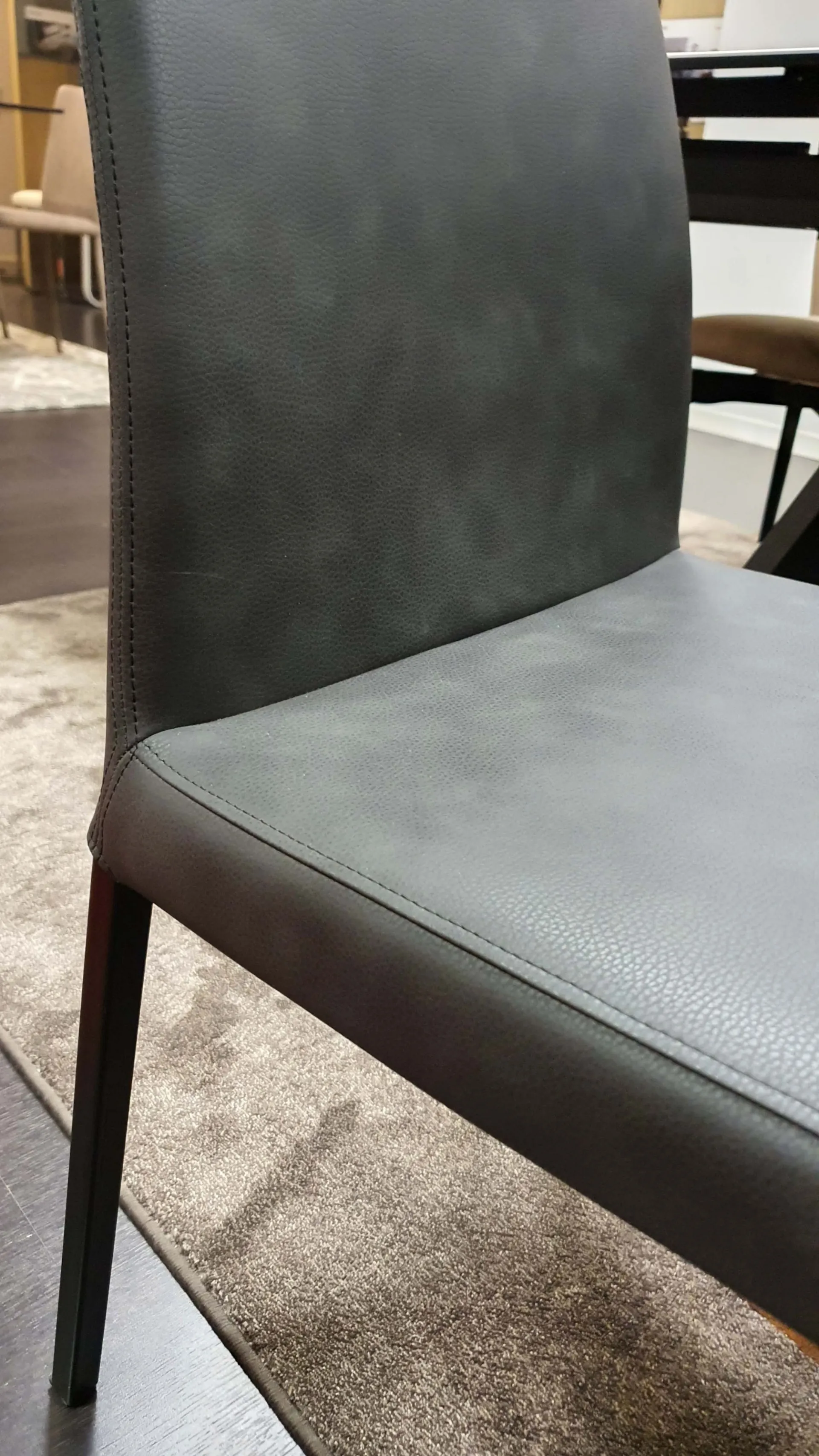 Sedia BEAUTY con gambe in metallo verniciato a sezione quadra colore NERO PERLA. Seduta ergonomica rivestita in Ecopelle Nabuk colore NERO e cuciture in tinta.
