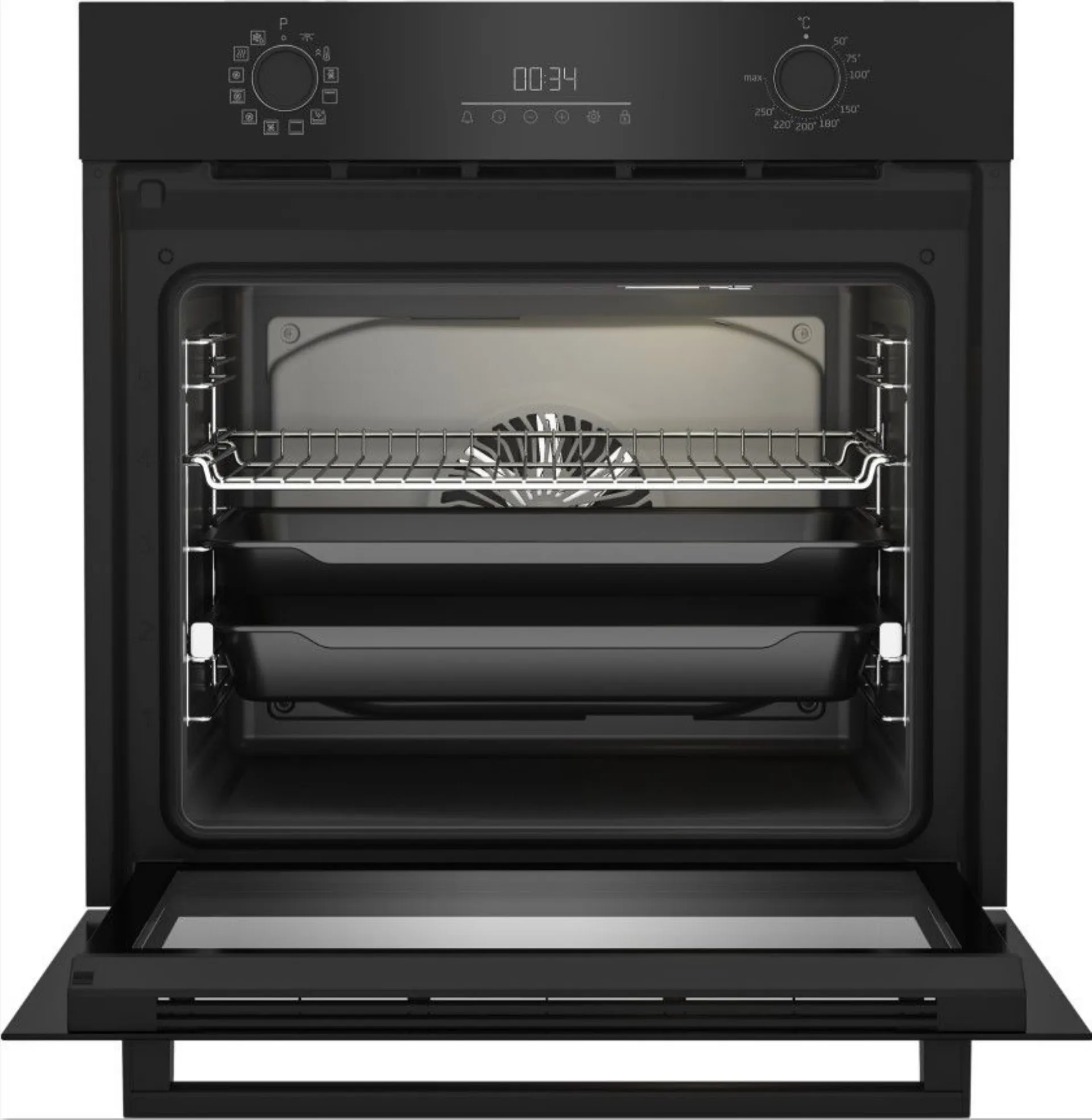 Forno incasso Beko 9 fun airfry 72L BBIR17300BCS, 12 funzioni e pratiche guide telescopiche per estrarre i ripiani bollenti con molta più facilità.