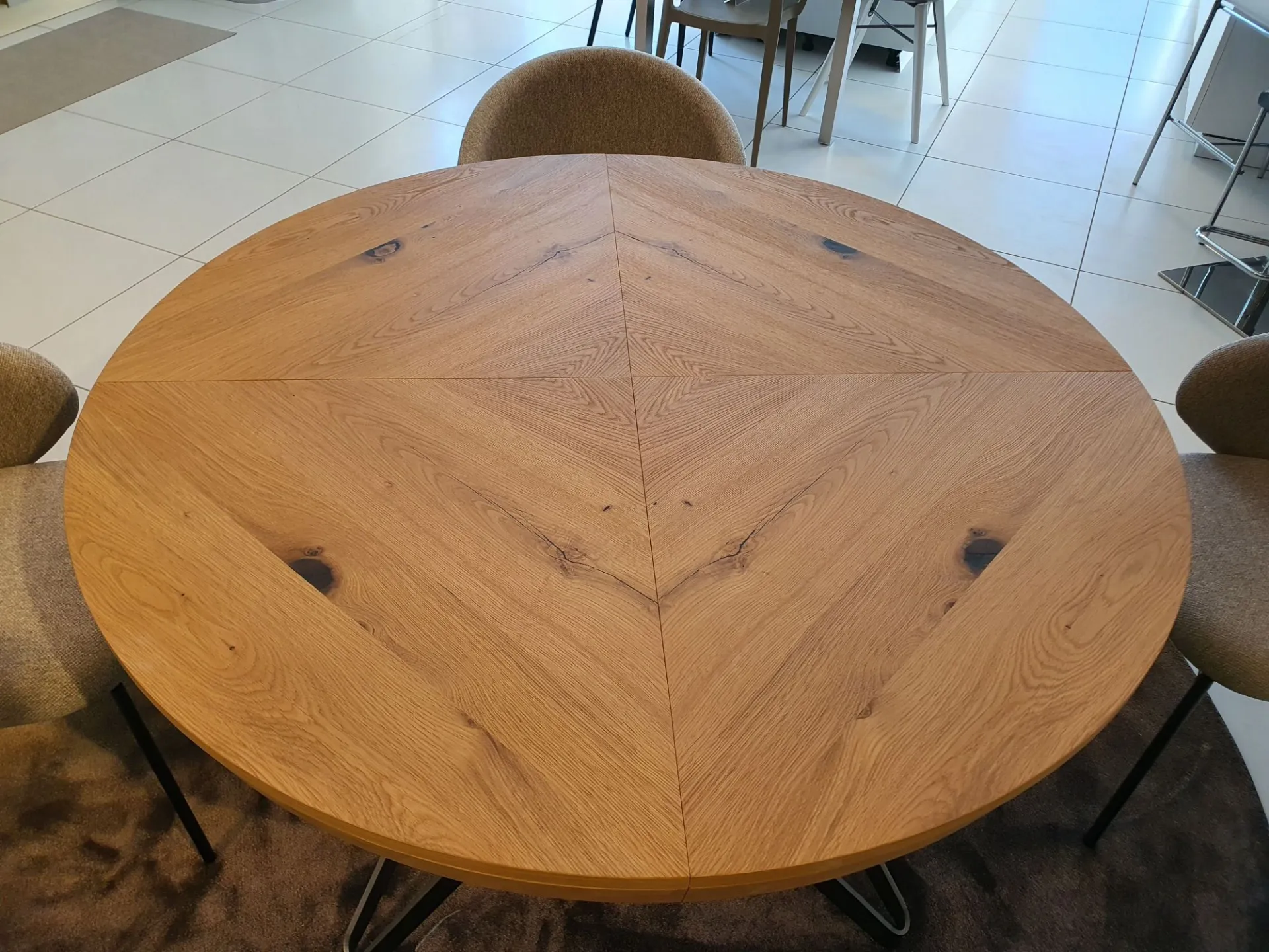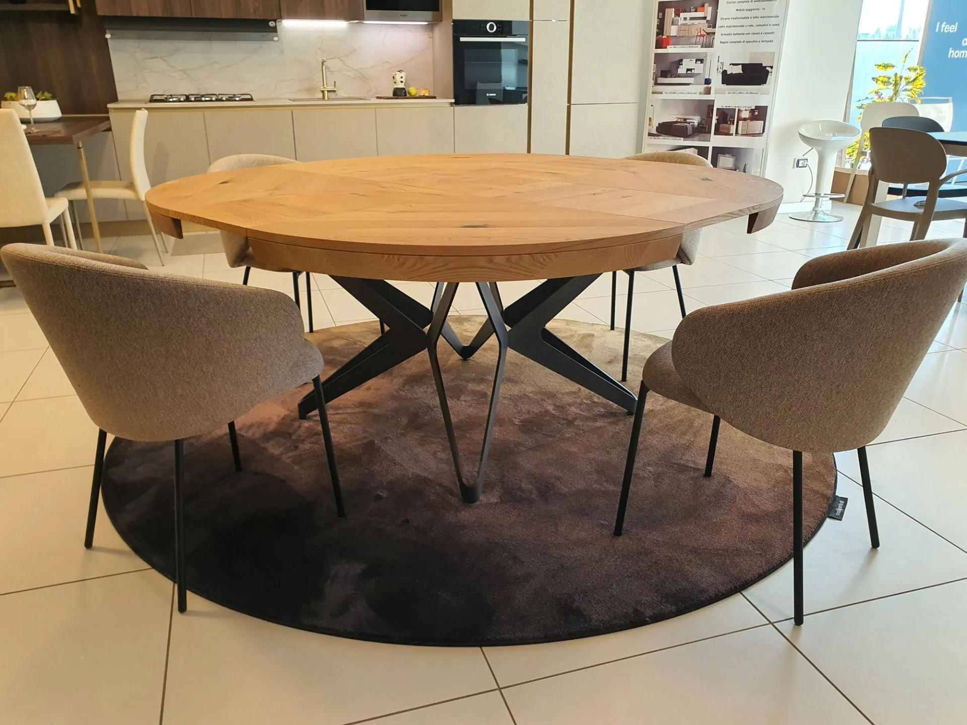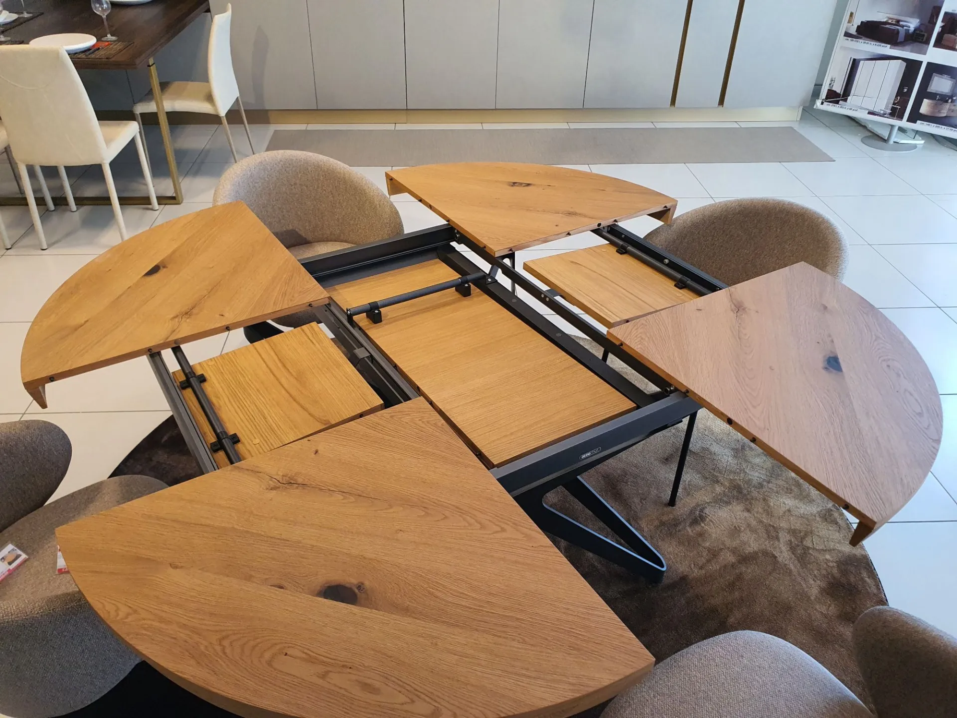 Tavolo BIG ROUND Rotondo allungabile e allargabile, 10 posti, piano PZ91 ROVERE VECCHIO NATURALE, MT98 basamento VERNICIATO GRAFITE OPACO cm. 130(165)x130(165)