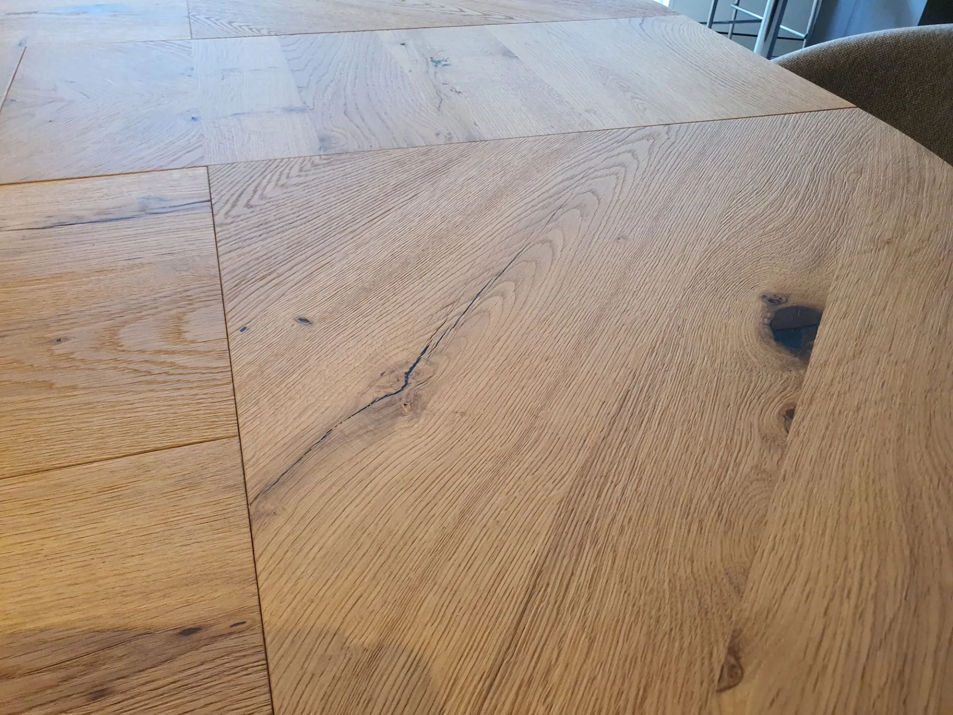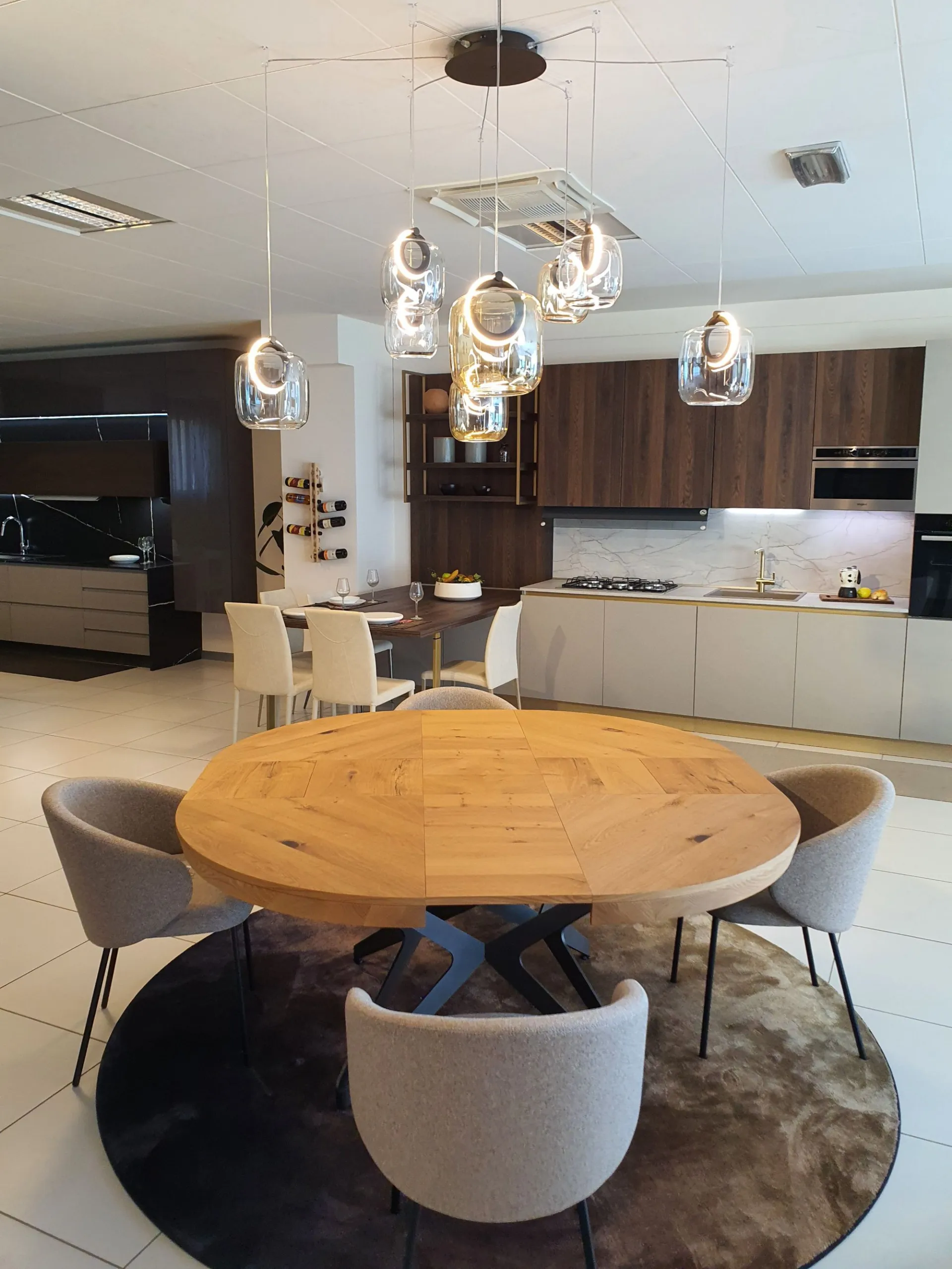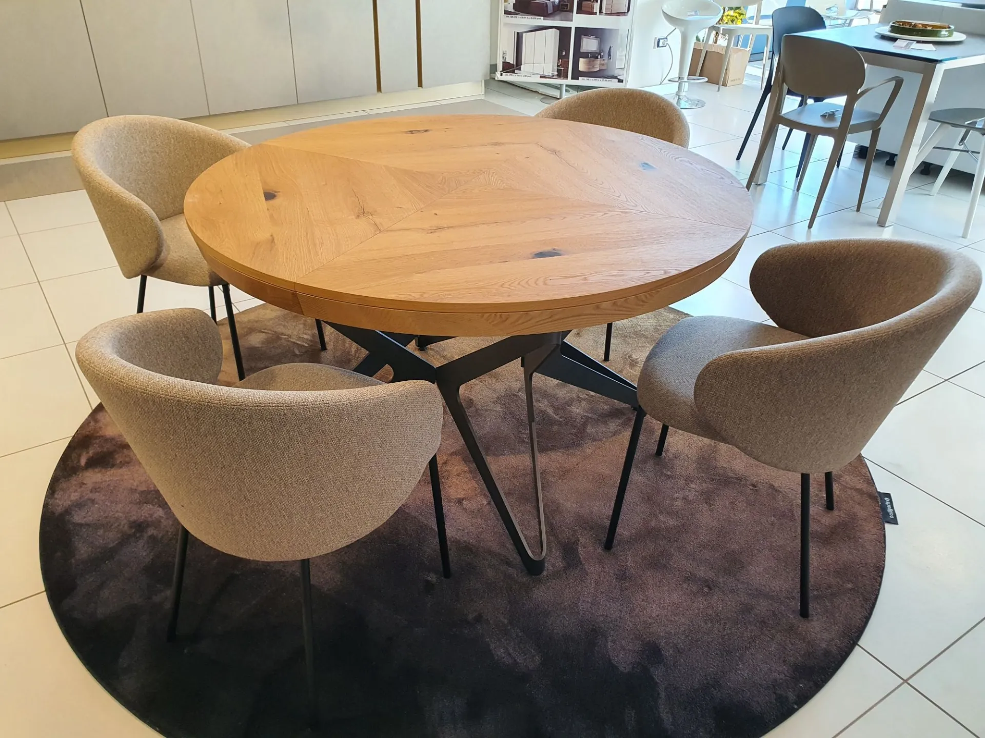 Tavolo BIG ROUND Rotondo allungabile e allargabile, 10 posti, piano PZ91 ROVERE VECCHIO NATURALE, MT98 basamento VERNICIATO GRAFITE OPACO cm. 130(165)x130(165)
