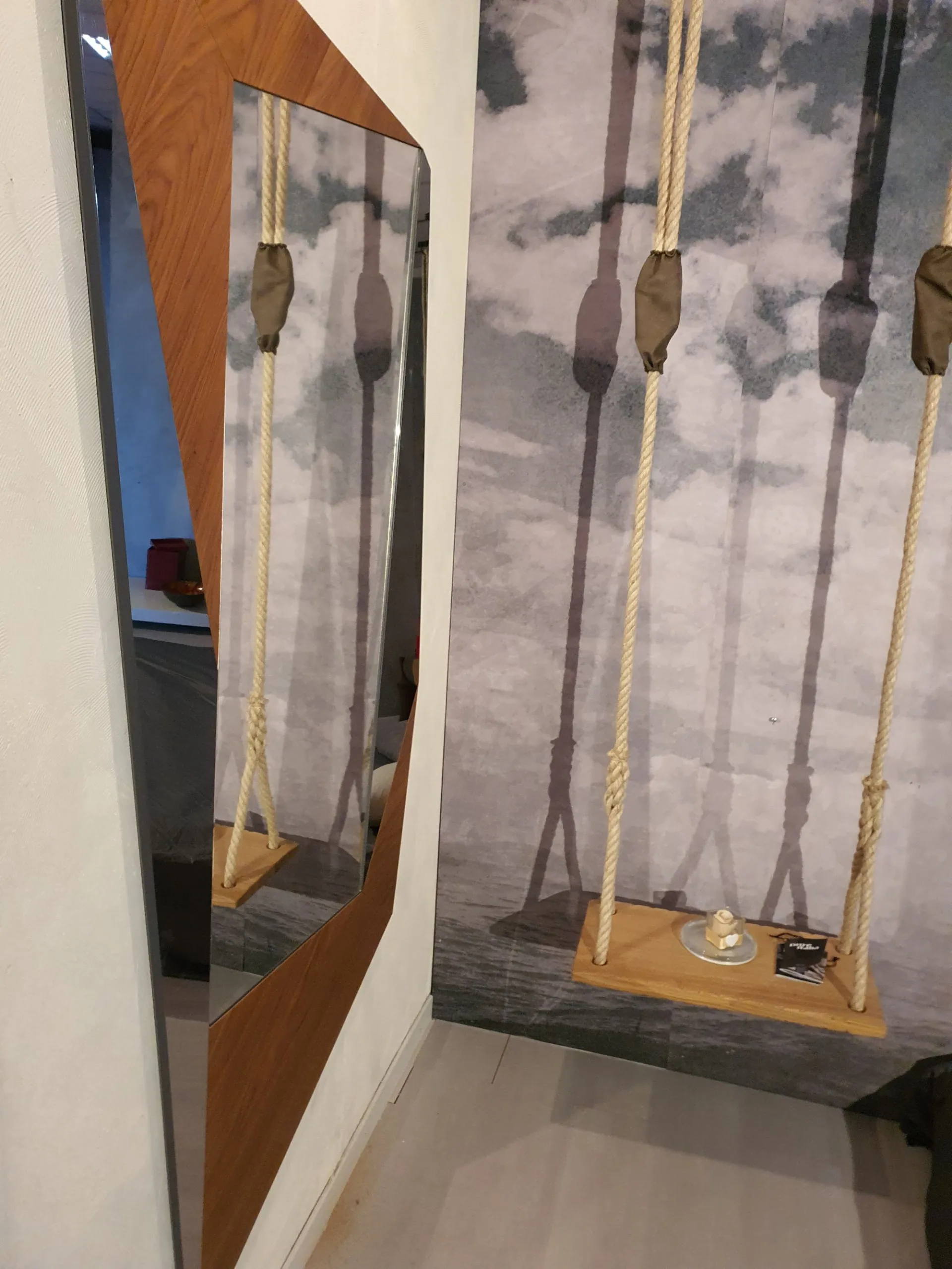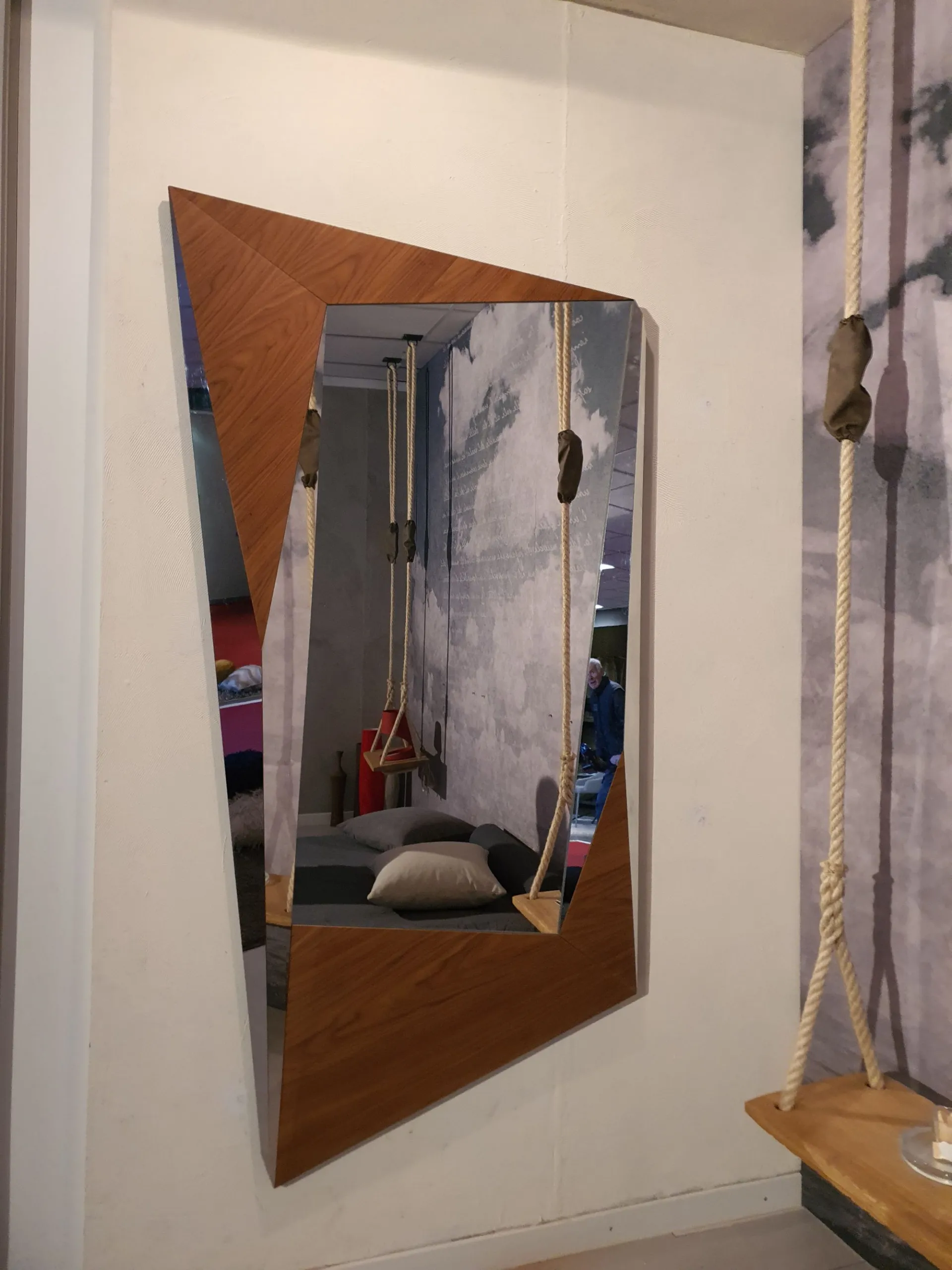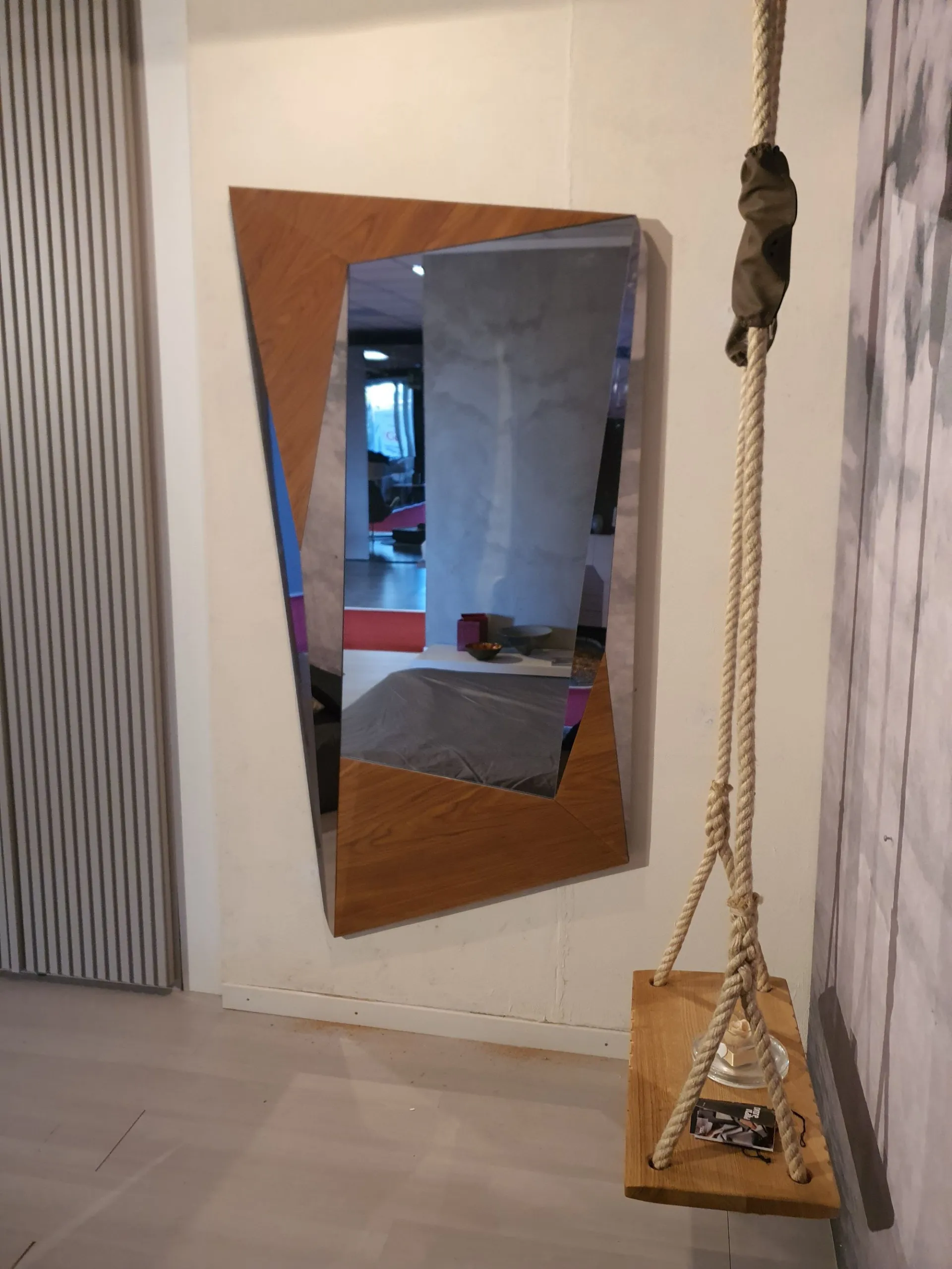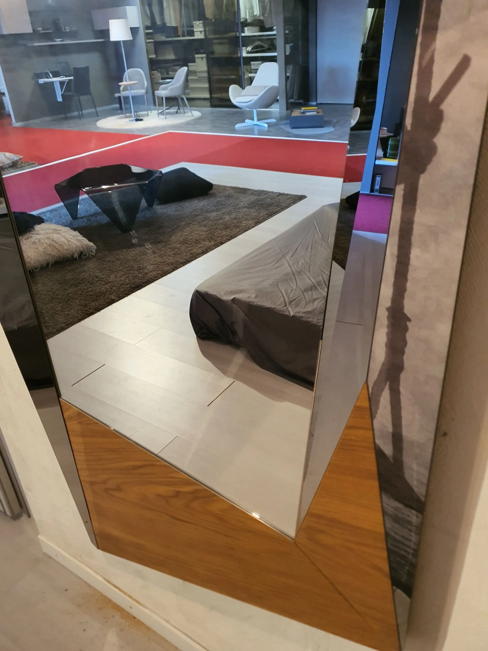 Specchio BIGXY X036 in noce canaletto. È posizionabile sia in verticale che in orizzontale