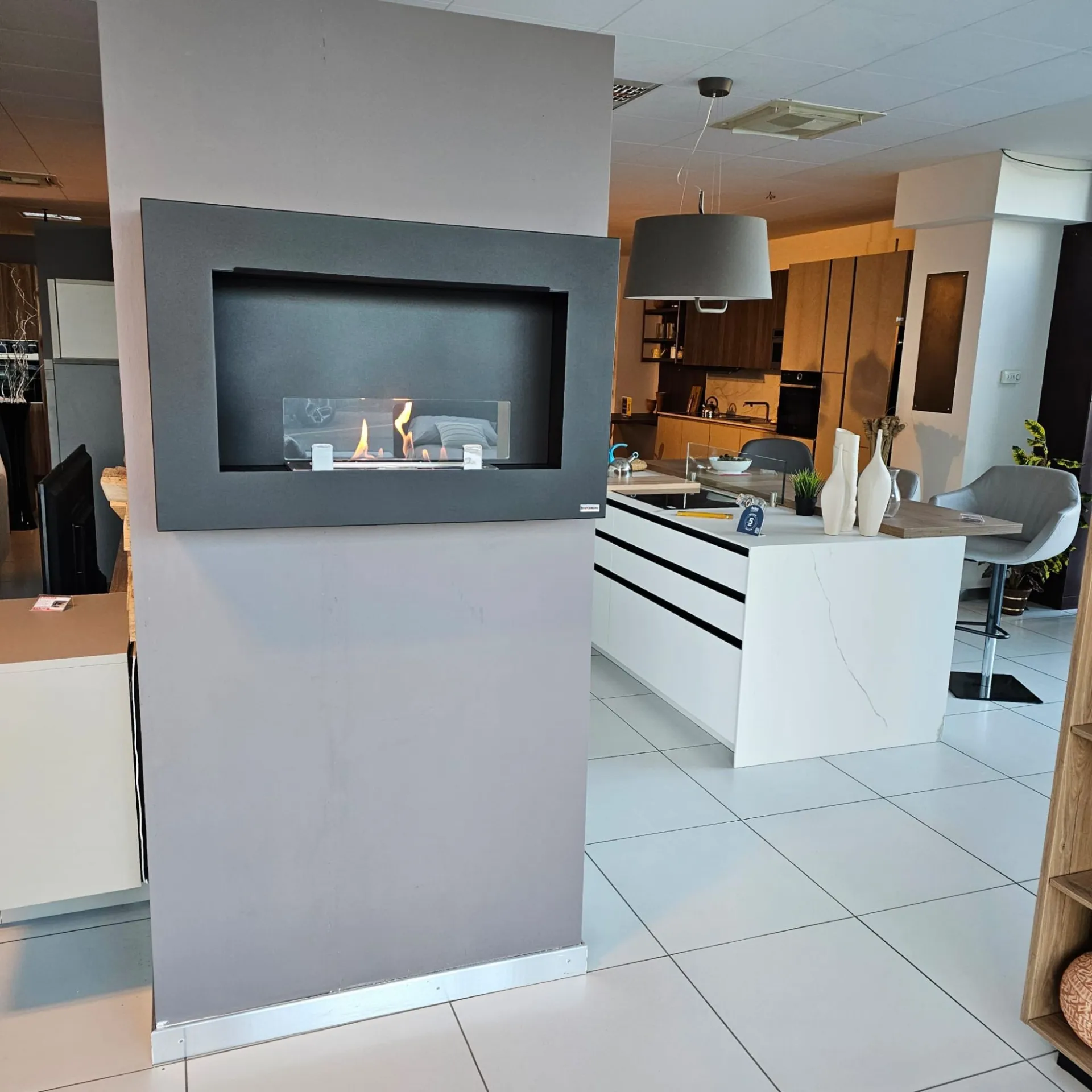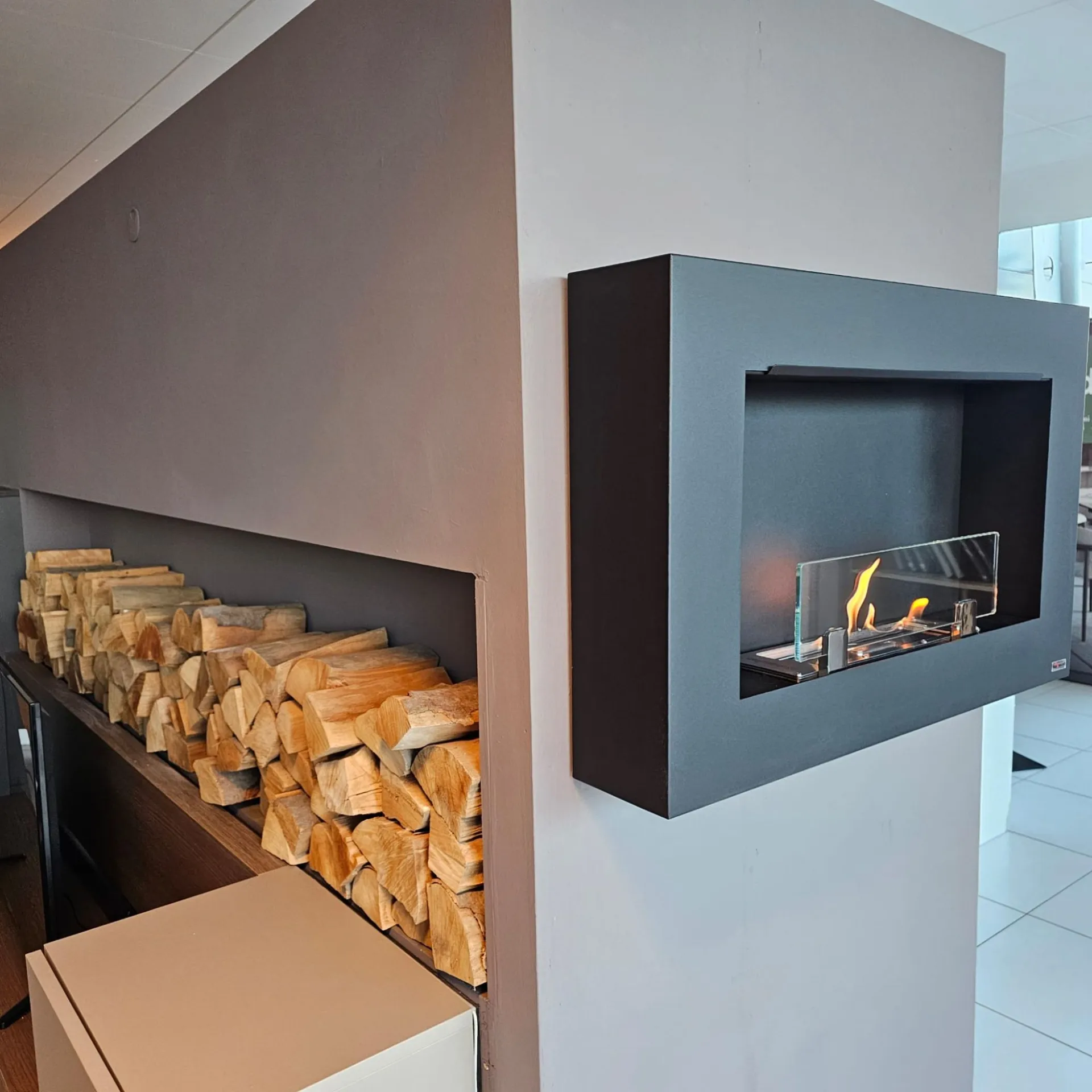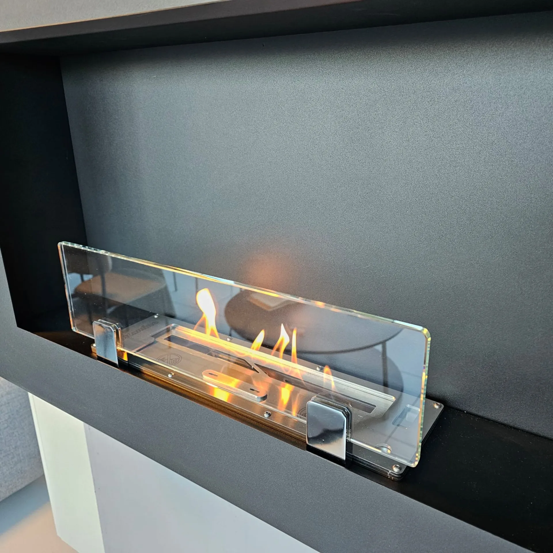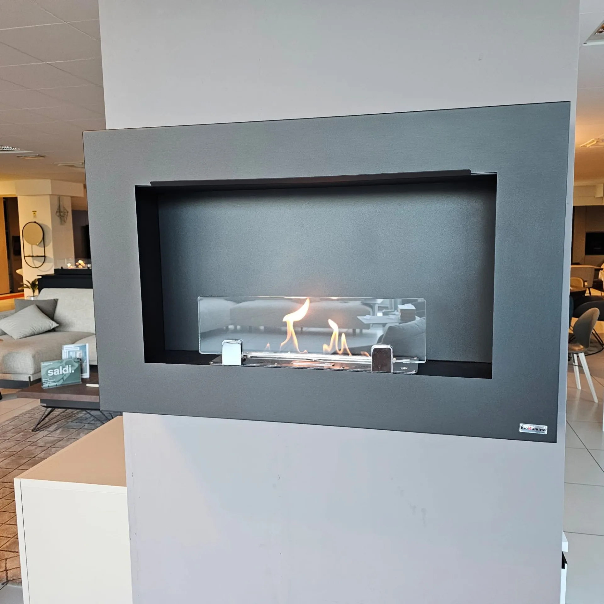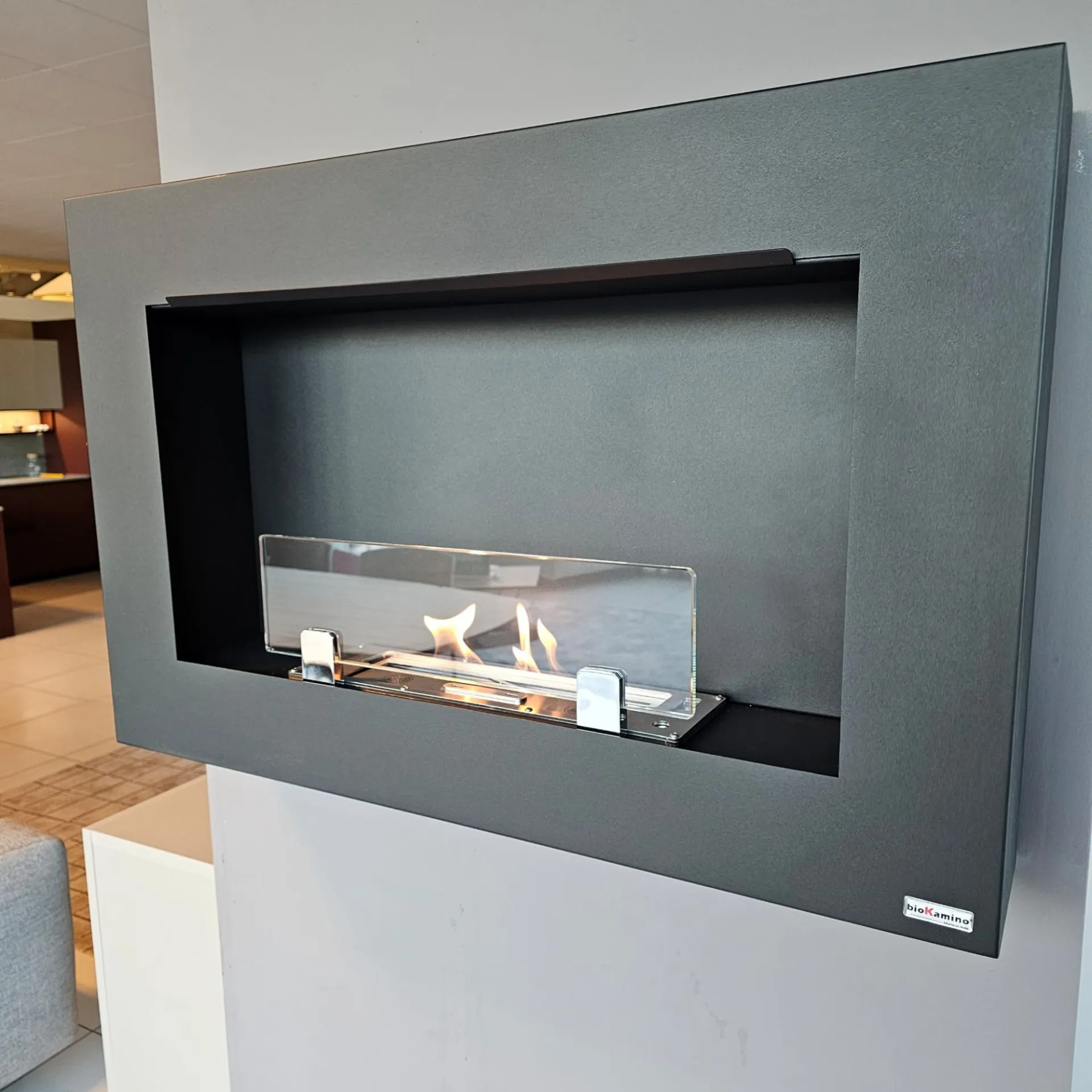 Biokamino a parete modello Michelangelo taglia "L", completo di bruciatore, cornice colore nero, tanica di bioetanolo inclusa, cm. 90x58h.x17prof.