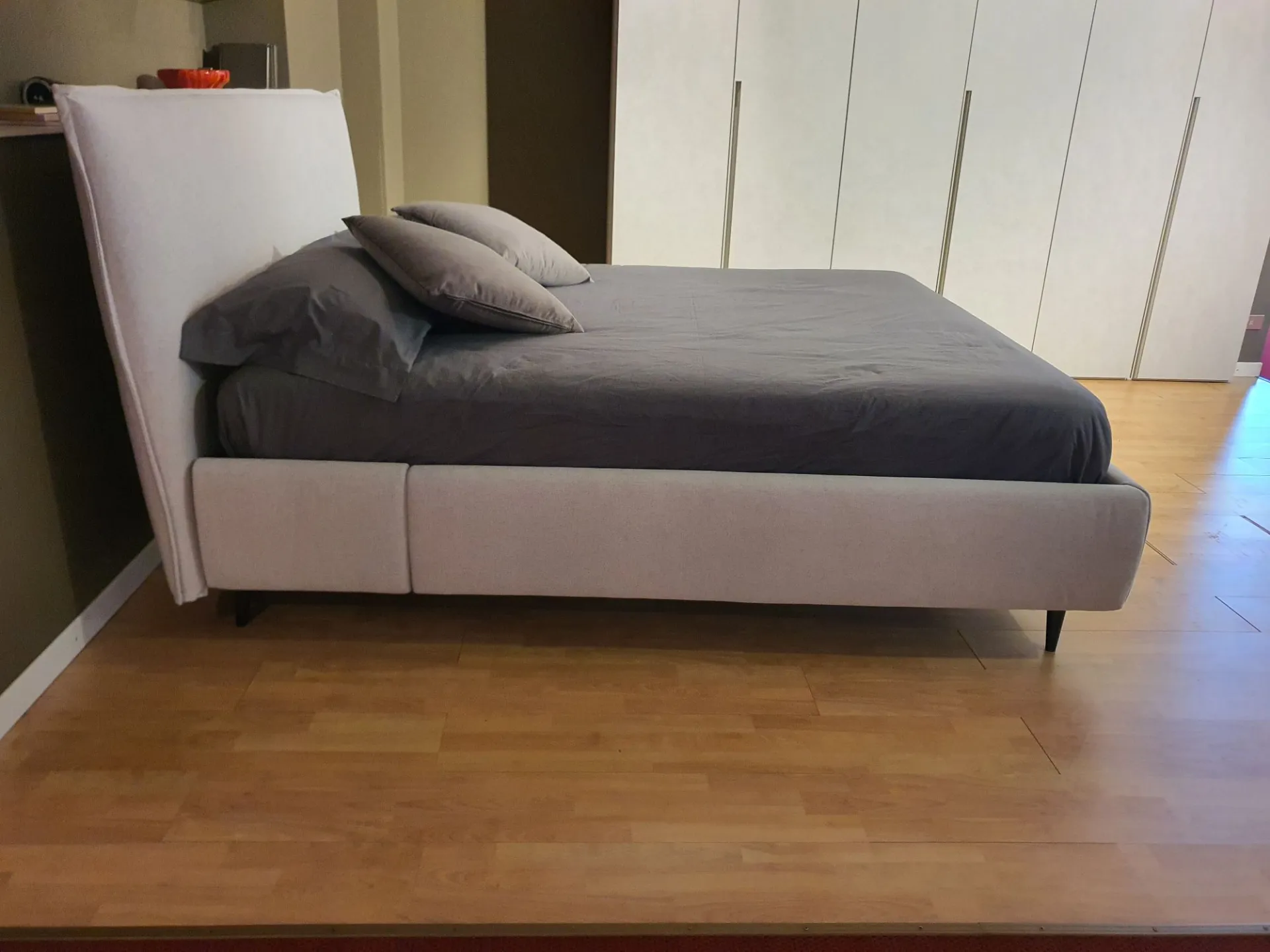 Il rivestimento è in tessuto grigio chiaro