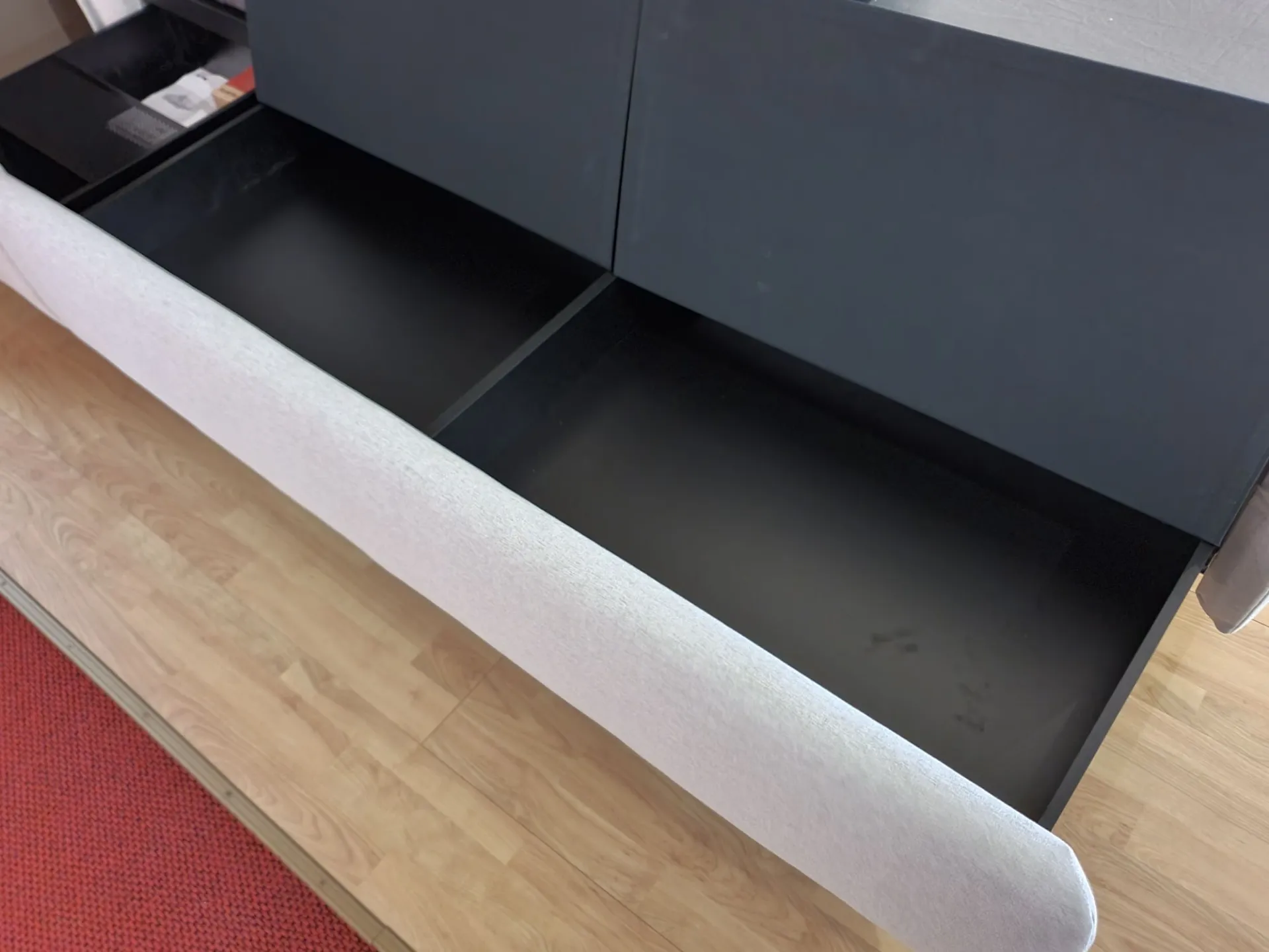 I cassetti laterali sono dotati di un pratico piano comodino per appoggiare ad esempio tazze, libri o altri oggetti. I cestoni sono comodi per riporre coperte e biancheria.